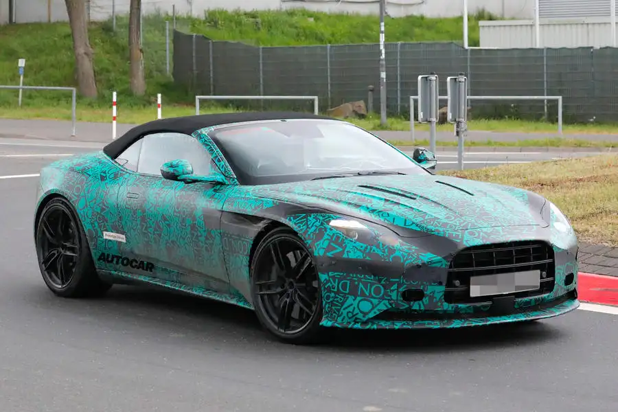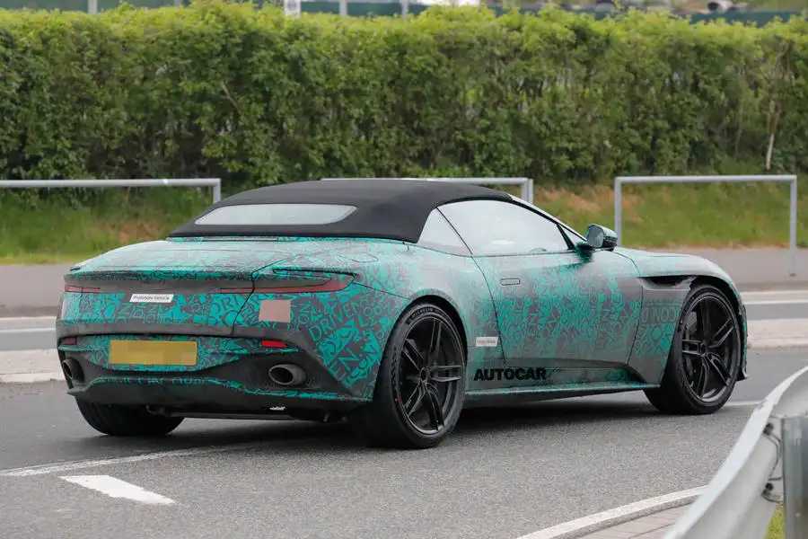 ภาพสปายช็อตที่ถ่ายที่เนือร์บูร์กริงในเยอรมนี เผยให้เห็นว่า DB12 Volante จะได้รับการเปลี่ยนแปลงเพียงเล็กน้อยจาก DB12 รุ่นปกติ มันเปลี่ยนหลังคาดีบุกของรถคูเป้เป็นหลังคาผ้าแบบพับได้ ซึ่งดูเหมือนจะยกมาจาก DB11 Volante รุ่นปัจจุบันโดยไม่มีการดัดแปลงอะไรมากมาย