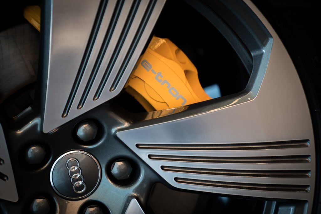 แบตเตอรีลิเธียม ไอออน ของ e-tron มีขนาดความจุ 95 กิโลวัตต์ชั่วโมง 396 โวลต์ มีน้ำหนักรวม 700 กก. แต่มีขนาดกะทัดรัด โดยใช้พื้นที่ในการจัดวางขนาด 2.28 x 1.63 x 0.34 เมตร เท่านั้น การชาร์จไฟทำได้ทั้งการชาร์จด้วยไฟบ้านสูงสุด 11 กิโลวัตต์ และมีออปชั่นเพิ่มเป็น 22 กิโลวัตต์ โดยระยะเวลาในการชาร์จ 16 แอมป์ – 3 เฟส ใช้เวลา 9 ชั่วโมง ประจุไฟฟ้าได้จาก 0 – 100 % และในการชาร์จกระแสไฟตรง 150 กิโลวัตต์ สามารถชาร์จประจุไฟฟ้าได้ จาก 0 – 80 % ภายในเวลา 30 นาที