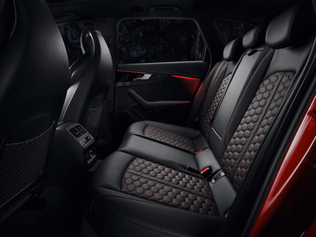 เบาะนั่งเป็นแบบ RS Sports ออกแบบมาเพื่อรองรับทุกการเคลื่อนไหวตลอดการขับขี่ ตัดเย็บและตกแต่งแบบ honeycomb เดินด้ายสีแดง และสัญลักษณ์ RS Audi Sport บริเวณพนักพิงหลังเบาะ เบาะคู่หน้าปรับไฟฟ้าพร้อมตัวดันหลัง มีฟังก์ชั่นนวดเพื่อการผ่อนคลาย และมีฟังก์ชั่นจดจำตำแหน่งการปรับด้านฝั่งคนขับ