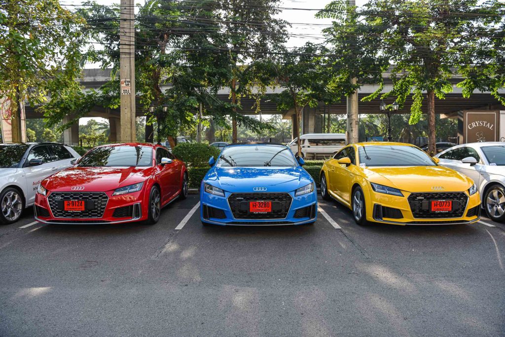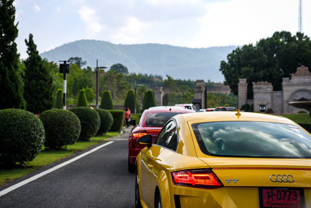 ตลอดเส้นทางกรุงเทพ – เขาใหญ่ รถยนต์ที่เรียกสายตาได้ดีที่สุดคงหนีไม่พ้นสปอร์ตคูเป้ตระกูล Audi TT ทั้ง 3 รุ่น TT Roadster, TTS Coupé และ TT Coupé ที่จัดมาให้สื่อมวลชนขับถึง 12 คัน ด้วยดีไซน์และรูปลักษณ์ที่เป็นเอกลักษณ์ โดดเด่น สีสัน สะดุดตา นอกจากจะขับสนุกเต็มอารมณ์สปอร์ตแล้ว ตลอดเส้นทาง ฝูง TT ยังได้รับความสนใจจากว่าที่ลูกค้าอาวดี้อีกด้วย