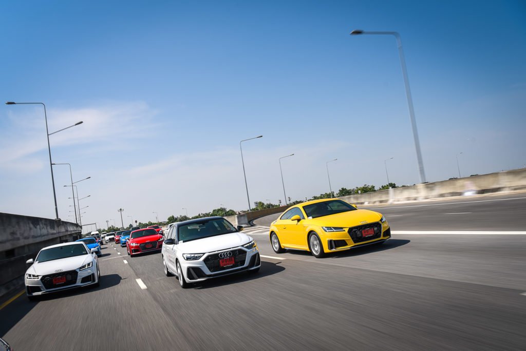 กิจกรรม Press Trip ครั้งนี้มียนตรกรรมอาวดี้มาให้สื่อมวลชนได้ลองขับมากถึง 16 รุ่น จำนวนทั้งหมดกว่า 40 คัน โดยไฮไลท์จะเป็น 3 รุ่นใหม่ ที่เพิ่งเปิดตัวในประเทศไทยคือ The New Audi A1 Sportback, Audi A6 Avant 2.0L Black Edition และ Audi A7 Sportback รุ่น 2.0L และอีกหนึ่งความสำคัญที่สร้างความเร้าใจตลอดทริปคือฝูง Audi TT ที่มาครบทั้ง 3 รุ่นย่อย คือ Audi TT Coupé, Audi TT Roadster และ Audi TTS