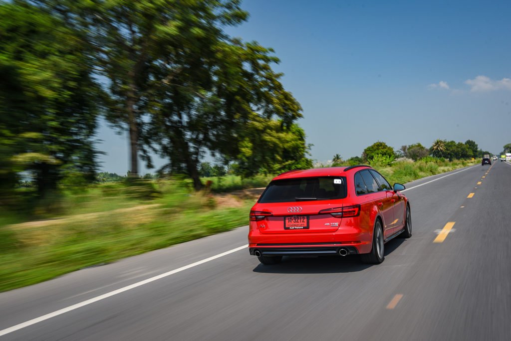 หลังมื้อเที่ยง ขบวนรถยนต์อาวดี้ออกเดินทางต่อบนถนนธนะรัชต์ ต่อด้วยเส้นทางเขาใหญ่-วังน้ำเขียว ซึ่งเป็นเส้นทางที่สวยงาม รายล้อมด้วยธรรมชาติและสถานที่ท่องเที่ยวมากมาย นอกจากนี้ เส้นทางนี้ยังช่วยปลดปล่อยอารมณ์สปอร์ตของอาวดี้ให้ผู้ขับได้รับรู้ถึงสมรรถนะของช่วงล่างเมื่อขับขี่ผ่านเส้นทางคดโค้ง ซึ่งการเซ็ทช่วงล่างที่หนึบแน่นช่วยให้รถมีการยึดเกาะถนนที่สร้างความมั่นใจ พวงมาลัยที่แม่นยำ และน้ำหนักที่ดี ทำให้การควบคุมรถในเส้นทางได้อย่างแม่นยำ ไม่มีจังหวะขาด-เกิน ให้ต้องแก้อาการรถด้วยพวงมาลัยในโค้งแต่อย่างใด ซึ่งไม่เพียงผู้ขับขี่เท่านั้น แต่การทรงตัวที่ดี การยึดเกาะถนนที่ดี และไม่มีอาการโยนตัวของตัวถัง ยังทำให้ผู้โดยสารนั่งได้อย่างสบายเพลิดเพลิน ไม่มีอาการปวดหัวหรือมึนหัวแต่อย่างใด