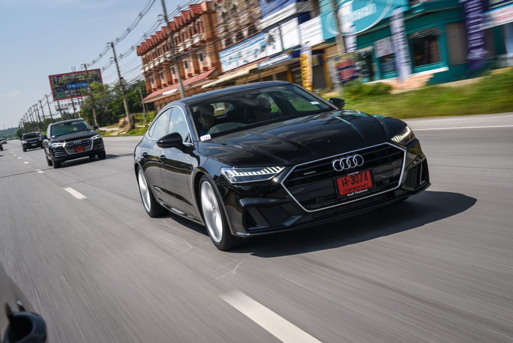 ส่วนอีกรุ่นที่มีความโดดเด่น มีดีไซน์ที่สวยงาม สปอร์ต หรูหรา ตอบโจทย์ทุกไลฟ์สไตล์ การออกแบบที่ผสานความเป็นรถสปอร์ตคูเป้ และรถซีดานได้อย่างลงตัว คือ Audi A7 Sportback ที่มาให้สัมผัสพร้อมกันถึง 2 รุ่นพละกำลังที่มีอย่างเต็มเปี่ยมไม่แพ้ดีไซน์ ทำให้การเดินทางจากกรุงเทพฯ มาเขาใหญ่เป็นไปอย่างสุขสบาย ในช่วงรถติดก็สามารถเร่งแซงได้ฉับไว ช่วงมอเตอร์เวย์ก็ตอบสนองได้ดั่งใจต้องการ ขณะที่ระบบขับเคลื่อน 4 ล้อ quattro with ultra-technology ยังคงช่วยเพิ่มความมั่นใจมากยิ่งขึ้น