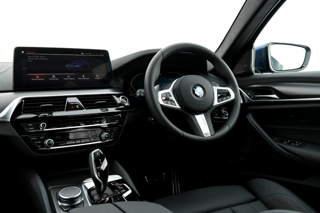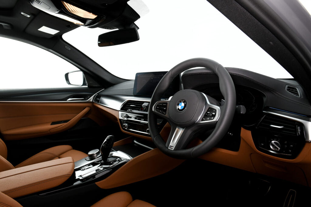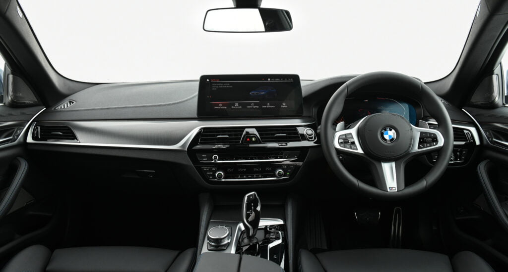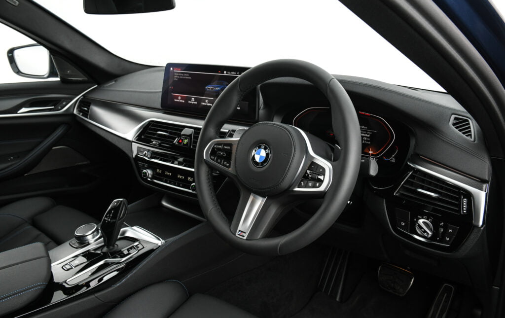 ด้านในตกแต่งด้วยวัสดุพรีเมียมและงานฝีมือสุดประณีตจากช่างผู้เชี่ยวชาญ ปุ่มบริเวณคอนโซลกลางมาในสีดำเงาเพื่อความหรูหรา ตัดกับพวงมาลัยหุ้มหนังมัลติฟังก์ชั่น M Sport พร้อมคอนโซลด้านบนบุด้วยหนัง Sensatec ในรุ่น 520d M Sport และ 530e M Sport ทั้งสามรุ่นมาพร้อมเบาะหนังแท้ Dakota