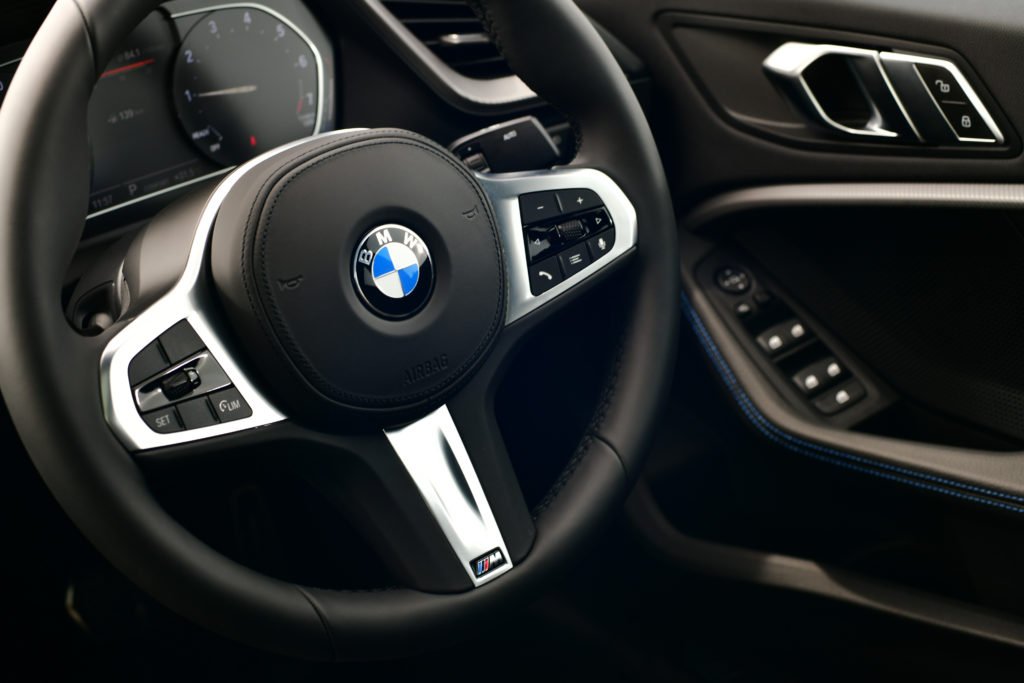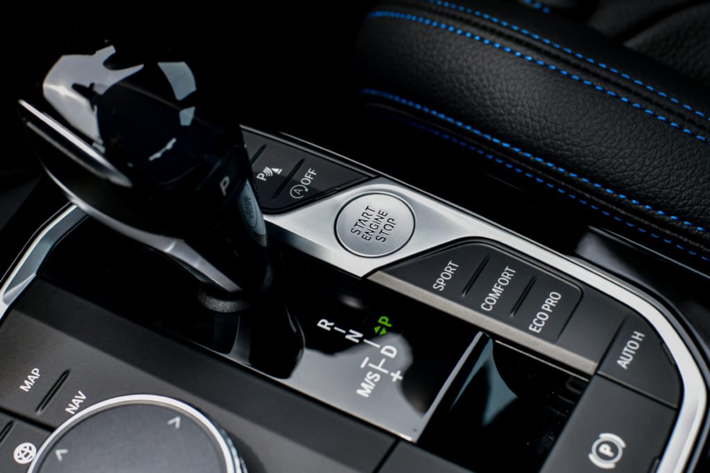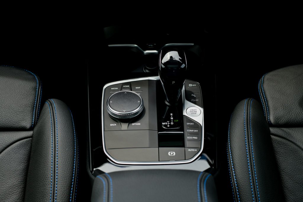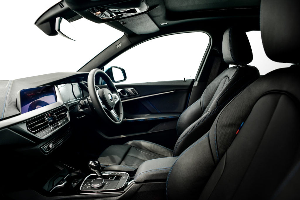 พวงมาลัย M Sport และเบาะที่นั่งตอนหน้าแบบสปอร์ตหุ้มหนังแท้ Dakota พร้อมรูระบายอากาศถูกติดตั้งมาเป็นมาตรฐาน ปรับไฟฟ้าพร้อมฟังก์ชั่นจดจำตำแหน่งในฝั่งคนขับ ตะเข็บเบาะนั่งตกแต่งด้วยด้ายสีน้ำเงิน กึ่งกลางระหว่างเบาะคู่หน้าเป็นคันเกียร์ ปุ่มปรับโหมดการขับขี่ ปุ่มสตาร์ทเครื่องยนต์ รวมถึงแป้นหมุนควบคุมการทำงานของหน้าจอระบบสาระบันเทิง