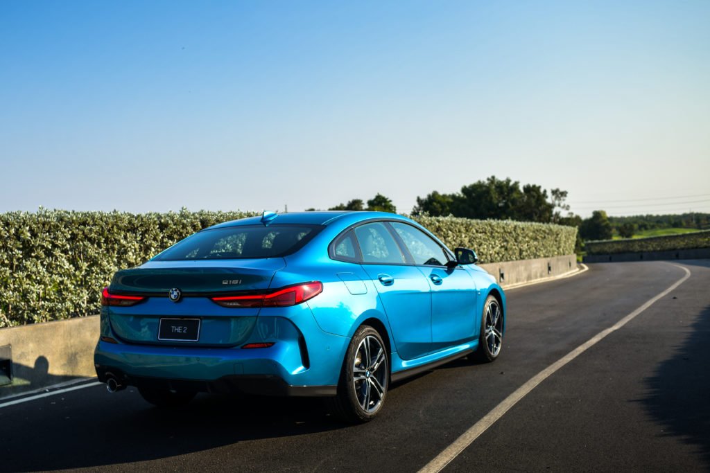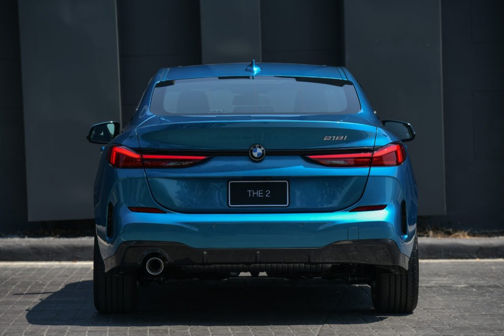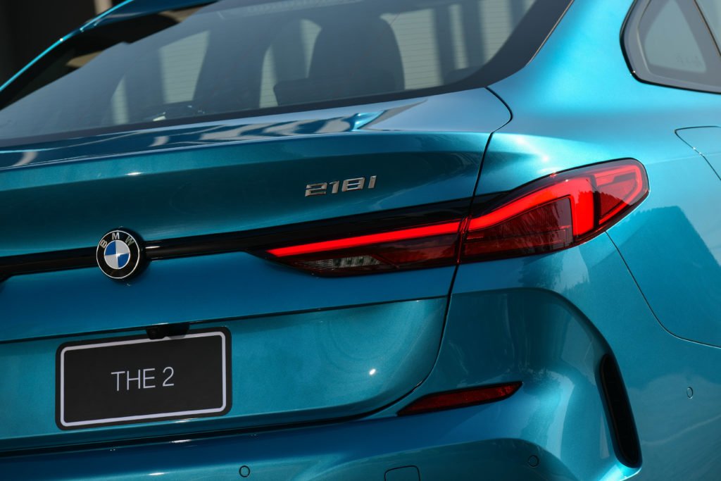 ไฟท้าย LED ดีไซน์เพรียวบางลาดออกในแนวนอนควบคู่ชิ้นส่วนสีดำ High-gloss Black เชื่อมต่อไฟท้ายทั้งสองส่วนสู่ตราสัญลักษณ์ BMW ตรงกลาง ส่งให้ท้ายของ 218i Gran Coupe M Sport ดูกว้างและดุดันยิ่งขึ้นบนท้องถนน นอกจากนี้ยังมาพร้อมกับชุดแต่ง M Sport ที่ประกอบด้วยกันชนหน้า-หลัง และสเกิร์ตข้างแบบสปอร์ต และติดตั้งล้ออัลลอยน้ำหนักเบา M ลาย Double-spoke ขนาด 18 นิ้ว หุ้มยางขนาด 225/40 R18 ทั้ง 4 ล้อ