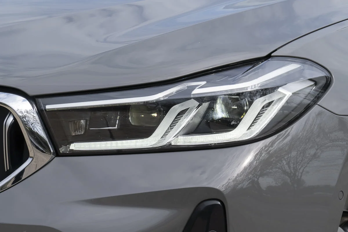 ส่วนของไฟหน้ามีความคล้าย Series 5 อยู่บ้าง แต่ไม่ได้เหมือนกันซะทีเดียว หน้าตรงเราจะเห็นชุดกันชนหน้าที่ไม่ค่อยคุ้นตากับรุ่นอื่นๆของค่ายเท่าไรนัก มีเซนเซอร์รอบคัน และ กล้องรอบคันมาให้ครบ มาพร้อมไฟหน้า FULL LED พร้อม DRL แบบตัว L และไฟหน้าสามารถปรับตามทิศทางการหมุนของพวงมาลัย ระบบปรับการทำงานไฟสูงอัตโนมัติ High Beam Assistance ซึ่งยังคงเอกลักษณ์ของ BMW ในรุ่นนี้ยังไม่ได้เปลี่ยนเป็นแบบใหม่ที่จะเล็กและบางลงมากกว่าเดิม