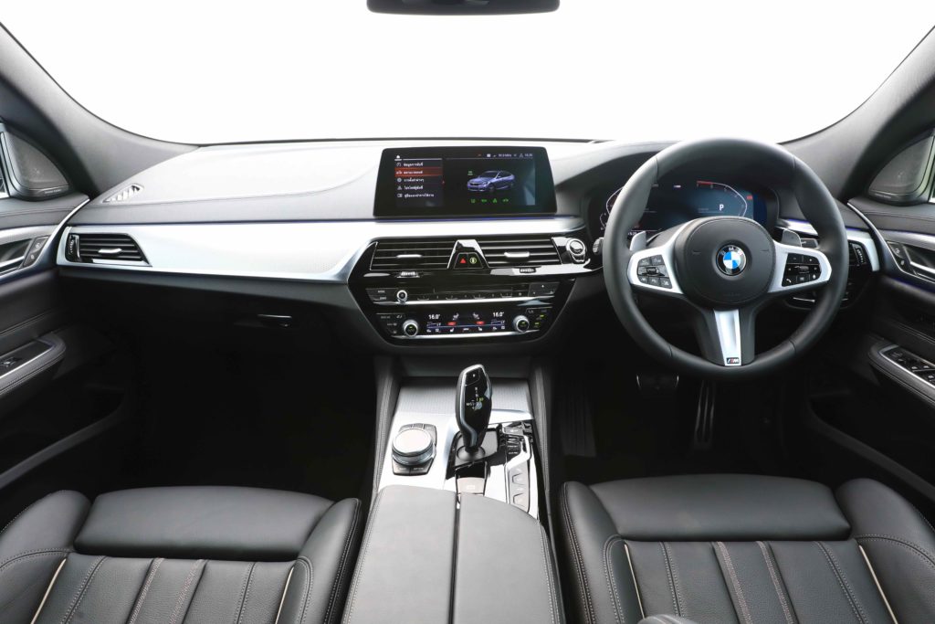 ห้องโดยสารของ 630i GT M Sport ออกแบบมาโดยคำนึงถึงผู้ขับขี่เป็นสำคัญ เบาะที่นั่งคนขับยกสูงเพื่อวิสัยทัศน์ที่กว้างรอบด้านยิ่งขึ้น จัดวางปุ่มควบคุมต่าง ๆ ให้เข้าถึงง่ายระหว่างขับขี่ เส้นสายการออกแบบและวัสดุแสดงถึงความประณีตและความเหนือระดับ ภายในห้องโดยสารใช้โทนสีดำเป็นหลัก ตกแต่งด้วยวัสดุ Aluminium Rhombicle with finisher Pearl Chrome แดชบอร์ดด้านบนหุ้มด้วยหนัง Sensatec หลังคาห้องโดยสารสีดำ Anthracite และมีไฟสร้างบรรยากาศในห้องโดยสาร 6 สี