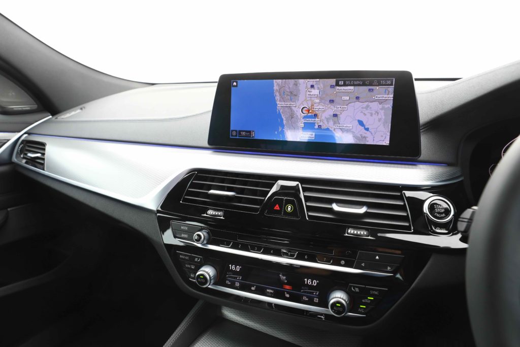 กลางแดชบอร์ดเป็นหน้าจอสัมผัสของระบบสาระบันเทิง iDrive ขนาด 10.25 นิ้ว ควบคุมการใช้งานได้จากปุ่มหมุนที่คอนโซลกลาง รองรับระบบเชื่อมต่อ BMW ConnectedDrive พร้อมระบบการสั่งงานด้วยเสียง (Intelligent Voice Control Assistance) และระบบการสั่งงานด้วยการเคลื่อนไหวของมือ (BMW gesture control) มีฟังก์ชั่นระบบนำทาง Navigation System รุ่น Professional รวมถึง เครื่องเล่น CD / DVD Blu-Ray ระบบเสียงเป็นของ Harman Kardon