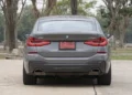 ด้านท้ายจะเห็นได้ชัดเลยว่า ช่วงหลังคาด้านหลังจะลาดเอียงลงมา เพื่อช่วยในเรื่องของ Aerodynamics เวลาขับขี่หรือตอนใช้ความเร็วสูงได้ดีขึ้น และมีการที่ใส่ไฟท้ายขนาดใหญ่ เป็นไฟท้าย LED เต็มระบบ ที่ยังคงสวยเวลาเปิดใช้งาน เสริมด้วยชุดกันชนหลัง M Sport โทนสีดำข้างล่างเข้ามาทำให้ท้ายมันไม่หนาเกินไป เสริมด้วย สปอยเลอร์หลังแบบ Active ตามความเร็วหรือสั่งเปิดได้ เป็นลูกเล่นที่น่าสนใจและทำให้ตัวรถเองมีอะไรมากกว่าเดิมจุดนี้ทำให้รถเท่ขึ้นและเสริมด้วยท่อคู่จริงมีเสียงปรับตามโหมดการขับขี่ได้