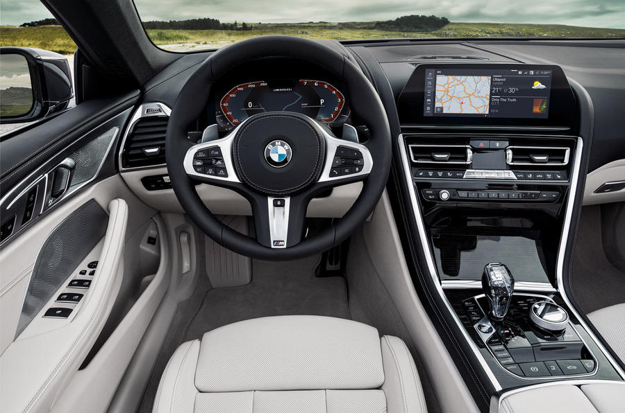 รูปลักษณ์ภายนอกของ 8 Series Convertible ไม่ต่างจาก Coupe หลังคาเป็นผ้าใบแบบหนาหลายชั้น มาพร้อมสีดำเป็นมาตรฐาน มีสี Anthracite เป็นออปชั่นเสริม สามารถเปิด-ปิดได้โดยกดปุ่มเดียวในเวลา 15 วินาที ที่ความเร็วสูงสุด 50 กม./กม. แผ่นปิดที่เก็บหลังคาเลือนปิดอัตโนมัติเป็นพลาสติกเนื้อดีสีเดียวกับแดชบอร์ดและแผงประตู ห้องโดยสารเป็นแบบ 2+2 ที่นั่ง