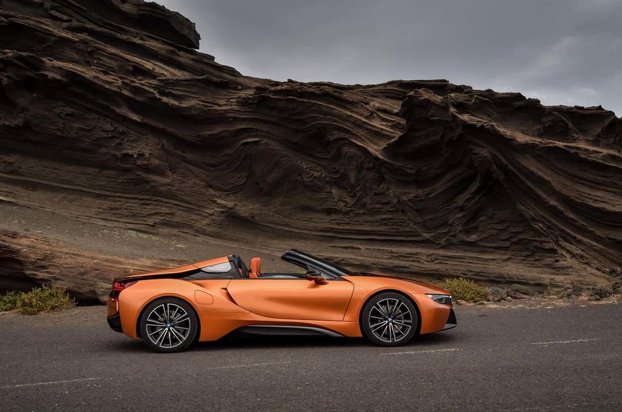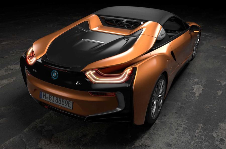 i8 Roadster เกิดจากความก้าวล้ำทางเทคโนโลยีและดีไซน์จนตกผลึกออกมาเป็นรถเปิดประทุนสุดไฮเทค โครงหลังคาของมันจะพับเก็บไว้ใต้กระโปรงด้านหลังโดยอัตโนมัติเพียงกดปุ่มแค่ปุ่มเดียว ซึ่งหลังคานี้ประกอบด้วยผ้าและโครงแข็ง มันสามารถเปิด-ปิดได้ภายในเวลาเพียง 15 วินาที ที่ความเร็วสูงสุด 50 กม./ชม.
