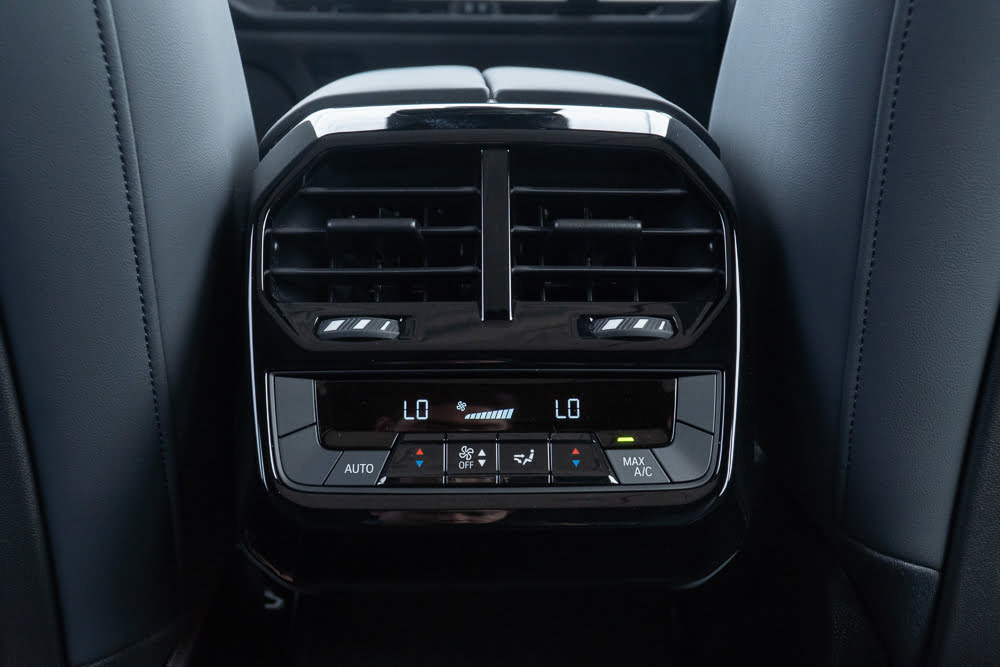 ส่วนคอนโซลกลางด้านหลังเป็นแบบปุ่มดิจิตอล แยกซ้ายขวาปรับอิสระ สามารถเพดิ่ม-ลดอุณหภูมิได้ตามความต้องการสำหรับคนนั่งข้างหลัง มีปุ่ม MAX AC สามารถเพิ่มความเย็นได้อีก และซุ้มอุโมงค์เกียร์ไม่มีแล้วเพราะว่าเป็นรถไฟฟ้ามันก็จะเพิ่มที่