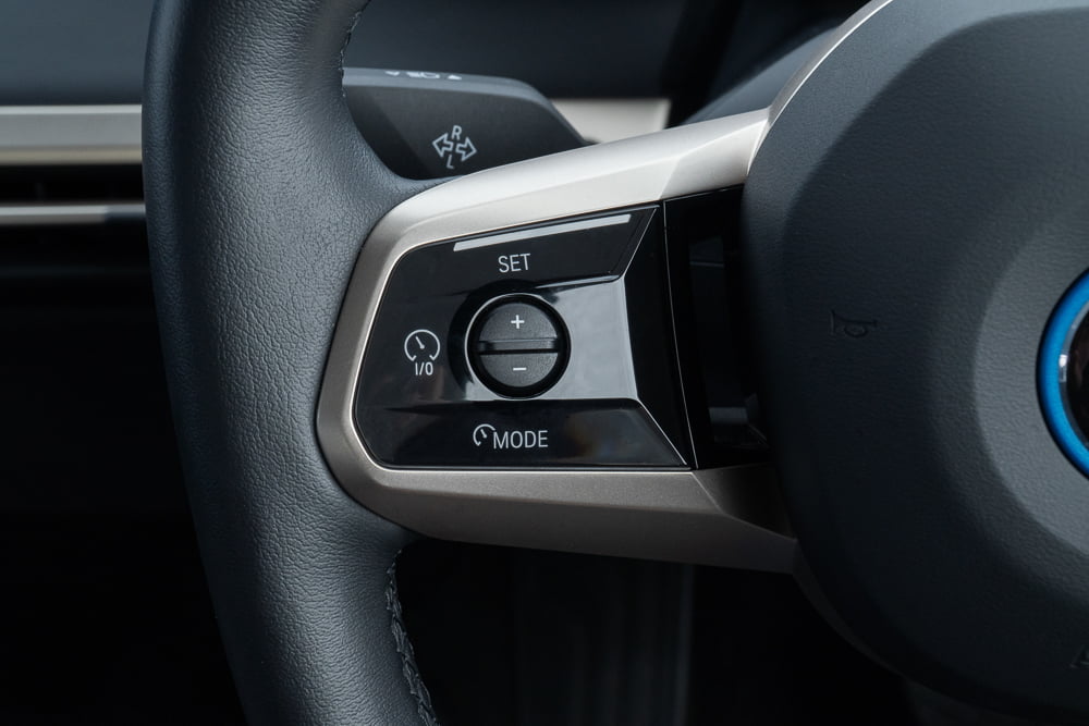 เรามาลองในเรื่องของระบบ adaptive cursie Control สำหรับคันนี้ทำถึงจุดหยุดนิ่งหรือว่า Stop and Go ด้วยโดยปุ่มคอนโทรลทั้งก้านพวงมาลัยด้านซ้ายมือเราก็เข้าไปตั้งค่าก็จะมีในเรื่อง Speed Limit ที่โชว์ใน Head up Display หรือว่าจอมาตรวัด ระยะห่างตั้งได้ค่อนข้างละเอียดครับไม่ได้เป็นแบบขีดๆ เหมือนกับพวก BMW X3 หรือซีรี่ส์ ตั้งได้สูงสุดถึง 200 – 300 เมตร อีกโหมดหนึ่งก็ใช้ adaptive cursie control ก็จะมีไอคอนของรถมาตรวัดแล้วก็พวงมาลัยระบบนี้ก็จะเข้าควบคุมแม้กระทั่งถึงพวงมาลัยด้วย ซึ่งทำงานร่วมกับเรดาร์กับกล้องหน้ารถก็จับเส้นประถมในเรื่องของเลนส์ ระบบเตือนเมื่อออกนอกประคองพวงมาลัยให้อยู่ในเลนส์ ตั้งความเร็วได้ง่าย สำหรับตัว ix หรือว่ารถไฟฟ้าล้วนคันนี้ แล้วก็พวงมาลัยก็จะควบคุมเองนะแม้กระทั่งรถเลี้ยวแล้วมีเส้นปะที่ชัดเจนพวงมาลัยเขาก็จะประคองเลี้ยวตามให้ด้วย