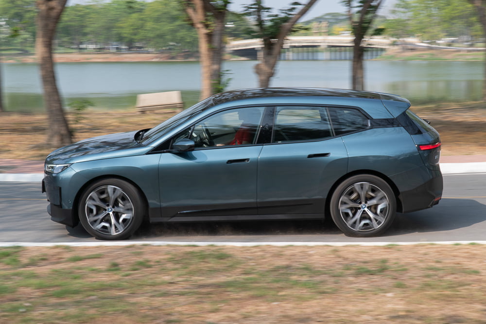รุ่นที่เราจะนำมาทดสอบกันในวันนี้คือ BMW ix xDrive 40 ว่าเป็นรถไฟฟ้าล้วน ซึ่งมิติตัวถังของรถความยาว 4,953 มม. ความกว้าง 1,967 มม. ความสูง 1,696 มม. น้ำหนักตัวรถอยู่ที่ 2,440 กก.