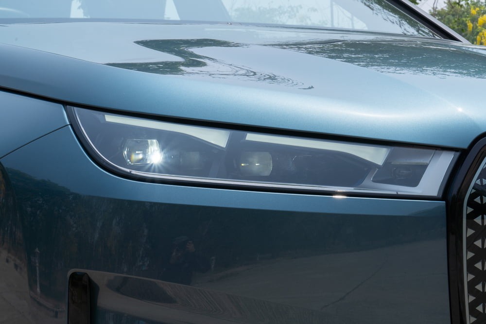 กระจกด้านหน้ามีความโค้งมากกว่ารถยนต์ SUV ปกติเพราะคันนี้เป็น SAV ที่ออกแบบมาให้ตามหลักอากาศพลศาสตร์ และจะเห็นนะว่ามีกล้องที่เป็นตัวเซ็นเซอร์ในเรื่องของการขับขี่ระบบความปลอดภัย เรื่องของ Adaptive Crusie Control การเปิดปิดไฟหน้าแล้วก็ตัวปัดน้ำฝนมาให้ด้วย ในส่วนหลังคาตัวนี้เป็นหลังคากระจกทั้งบาน หรือเรียกว่า panorami Glass และขอบคิวประตูกระจกตัวนี้เป็นสีดำเงาแบบ Gloss Black ถัดมาที่กระจกมองข้างสำหรับ ix ตัวนี้มีการออกแบบไฟเลี้ยว LED ซึ่งเป็นเอกลักษณ์ที่เป็นเส้นๆ มาให้มาพร้อมตัวไฟด้านข้างมาอีกเพราะว่าเห็นด้านหน้าแล้วก็ต้องเห็นด้านข้างด้วย และมีกล้องด้านข้างมาให้ด้วยเพราะตัวนี้เป็นกล้องแบบ 360 องศา ในส่วนของกระจกมองข้างก็จะมีตัว Blind Spot มาให้ ซึ่งเป็นกระจกแบบโค้งพิเศษทำให้มองเห็นขอบได้ลึกหรือว่ามองเห็นท้ายได้ลึกอยู่พอสมควรและปรับไฟฟ้าด้วย