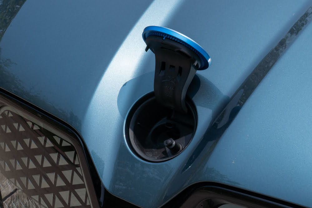 การออกแบบเป็นไปตามหลักอากาศพลศาสตร์หรือว่าหลัก Arrow Dynamic ส่วน kidney Grilled ก็ยังคงความโดดเด่นที่เป็นเอกลักษณ์ของ BMW และวัสดุที่บอกว่าเป็นนวัตกรรมของ BMW แน่นอนว่าเมื่อมีเศษหินเศษส่วนกระเด็นใส่บริเวณตัวรถก็จะสามารถใช้ความร้อนในการรีแพร์ให้กลับมาเนียนเรียบเหมือนเดิมได้ด้วยตัวเอง แต่สำหรับรถยนต์ไฟฟ้าตัวนี้ได้ย้ายตัวรับอากาศข้างหน้าไปไว้ที่ชายกันชนขอบล่างซึ่งอากาศจะเข้าไปในช่องด้านล่างชายกันชนขอบล่างที่เป็นพลาสติกและจพทำการเปิด-ปิดในการเซ็นเซอร์อุณหภูมิว่าอากาศควรจะเข้าไปเมื่อไหร่ กระจังหน้าที่ดูตันๆ มีเซ็นเซอร์ในการจับเรื่องความปลอดภัยและเรดาห์ต่างๆ อยู่ที่กระจังหน้า และโลโก้ด้านหน้าเปิดได้มีไว้เติมน้ำเพื่อฉัดกระจกด้านหน้าหรือด้านหลังซึ่งจะเรียกว่า Shy tech ถัดลงเราจะเห็นกล้องที่บริเวณกระจังหน้ารถซึ่งจะมีตัวฉีดน้ำเก็บซ่อนเพื่อทำความสะอาดเลนส์กล้อง