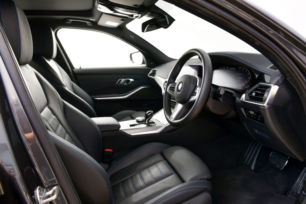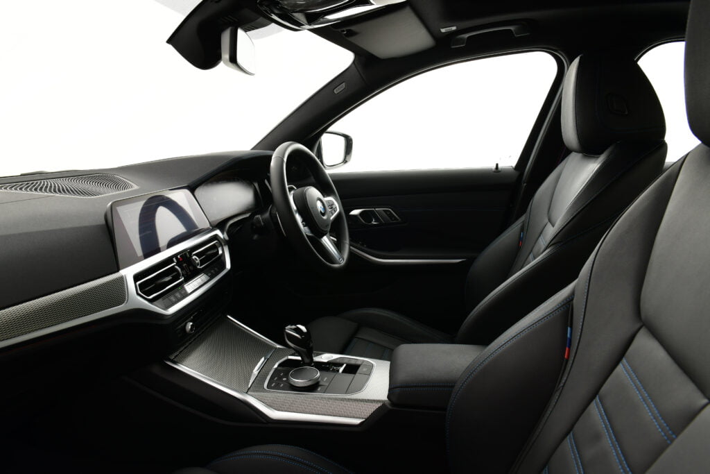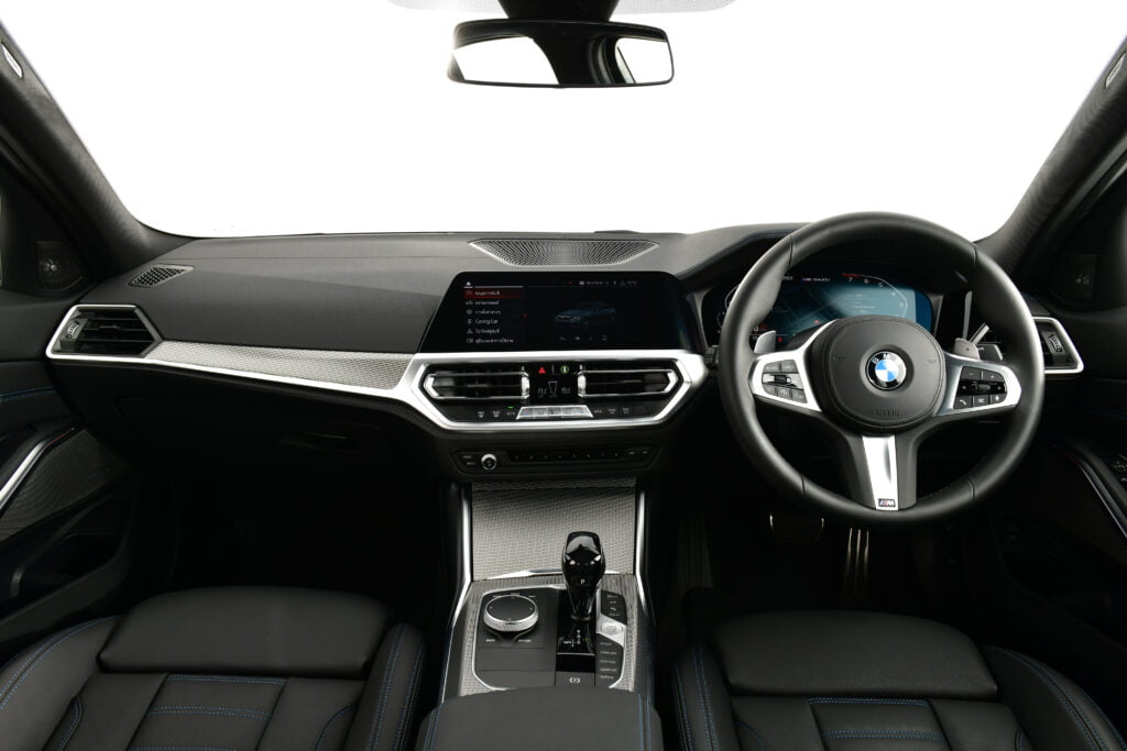 ห้องโดยสารถูกตกแต่งด้วยอะลูมิเนียมลาย Tetragon เติมเต็มบรรยากาศให้มีความหรูหรามากขึ้น รวมถึงดีไซน์เฉพาะตัวที่บ่งบอกชื่อรุ่น M340i xDrive บริเวณขอบประตูหน้า พร้อมปรากฎโลโก้ M340i บนแผงหน้าปัดดิจิทัลขนาด 12.3 นิ้ว และระบบนำทาง BMW Navigation System รุ่น Professional บนจอระบบสัมผัสขนาด 10.25 นิ้ว