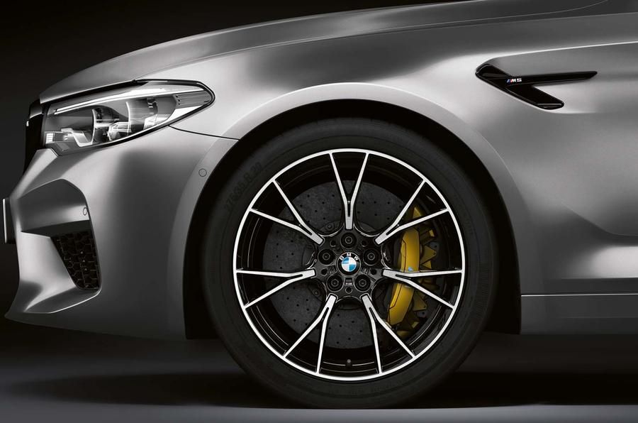 สิ่งที่แตกต่างจาก M5 ปกติได้แก่ระบบท่อไอเสียแบบ M Sport ที่ติดตั้งมาเป็นมาตรฐาน โดยมาพร้อมกับปุ่มปรับระดับความดังของท่อเพื่อความลั่น และแท่นเครื่องแบบใหม่ที่ใช้สปริงแข็งขึ้นเพื่อการตอบสนองที่ดีกว่าและเพิ่มความรวดเร็วของหน้ารถในจังหวะหักพวงมาลัย นอกจากนี้ M5 Competition ยังมาพร้อมกับช่วงล่างประสิทธิภาพสูงที่ช่วยลดการโยนตัวและลดความสูงตัวรถลง 7 มม.