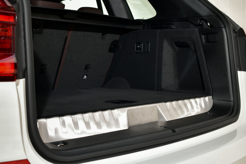 แบตเตอรี่ลิเธียมไอออนของ X3 xDrive30e ติดตั้งอยู่บริเวณใต้เบาะผู้โดยสารด้านหลังจึงช่วยประหยัดพื้นที่ ในขณะที่ถังน้ำมันตั้งอยู่เหนือบริเวณเพลาหลังของตัวรถ รถยนต์ปลั๊กอินไฮบริดคันนี้จึงสามารถบรรจุสัมภาระได้โดยแทบไม่ถูกรบกวนพื้นที่ ด้วยพื้นที่เก็บสัมภาระที่มีความจุถึง 450 ลิตร เทียบได้กับรถยนต์เครื่องยนต์สันดาปรุ่นอื่น ๆ และเมื่อพับพนักพิงเบาะหลังแบบ 40:20:40 ก็สามารถเพิ่มความจุได้สูงสุดถึง 1,500 ลิตร