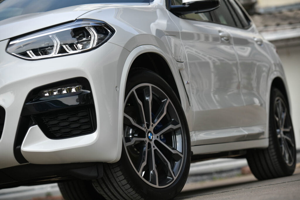 X3 xDrive30e มาพร้อมกับแพ็คเกจชุดแต่ง M Sport กันชนหน้า-หลังดีไซน์สปอร์ต ล้ออัลลอย M น้ำหนักเบาขนาด 20 นิ้ว ลาย Double-Spoke ยางหน้าขนาด 245/45 R20 ยางหลังขนาด 275/40 R20 คาลิเปอร์เบรกดีไซน์ M Sport อุปกรณ์มาตรฐานมีทั้งระบบไฟหน้า LED ปรับตามทิศทางหมุุนของพวงมาลัย ระบบปรับการทำงานไฟสูงอัตโนมัติ และราวหลังคาอลูมิเนียมแบบด้าน