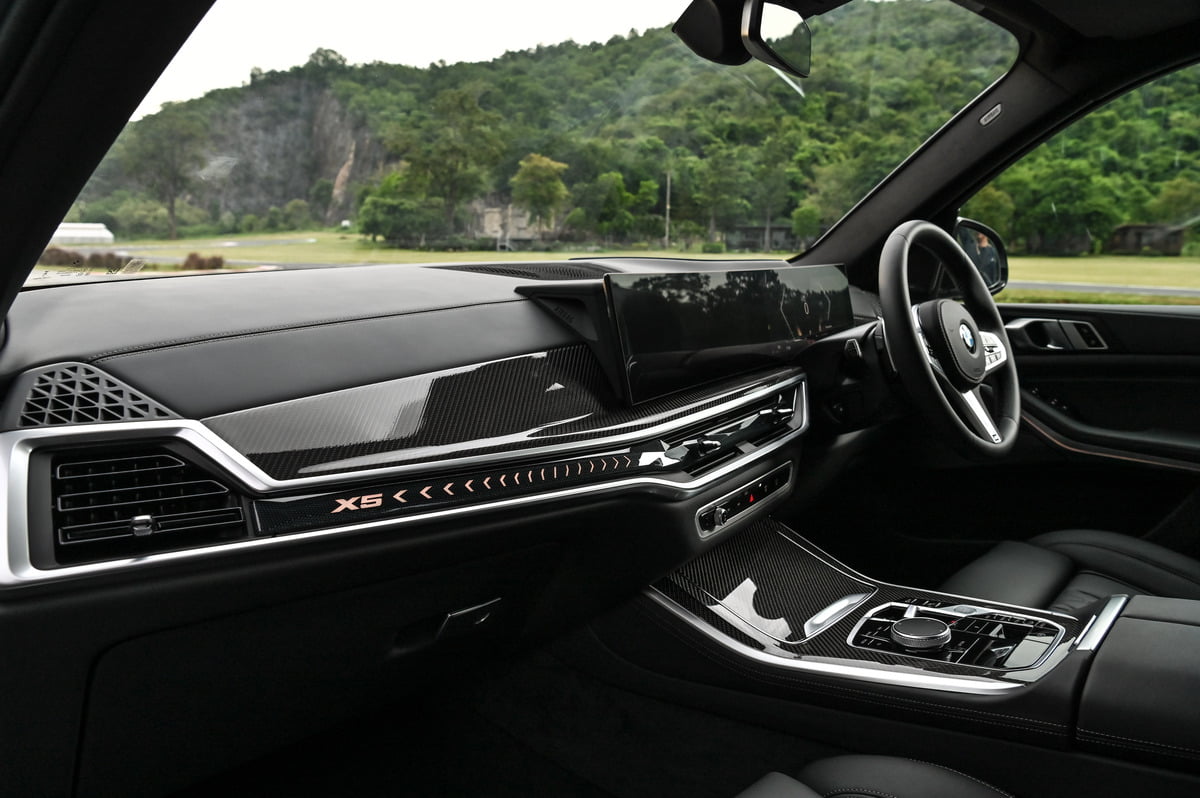 ระบบสัมผัสบนหน้าจอควบคุมช่วยลดจำนวนปุ่มและสวิตช์ต่าง ๆ ผ่านการควบคุมหลากหลายฟังก์ชันด้วยระบบดิจิทัล แถบไฟกราฟฟิกภายในรถยังมาพร้อมตัวอักษรชื่อรุ่น “X5” ความสะดวกสบายสูงสุดและบรรยากาศในห้องโดยสารของบีเอ็มดับเบิลยู X5 xDrive30d M Sport และบีเอ็มดับเบิลยู X5 xDrive50e M Sport ยังเสริมด้วยเบาะนั่งตอนหน้าแบบ Comfort ปรับไฟฟ้า พวงมาลัยหุ้มหนังดีไซน์ M ชุดไฟสร้างบรรยากาศ ระบบปรับอากาศอัตโนมัติ 4 โซน และระบบ Travel & Comfort ทั้งสองรุ่นยังตกแต่งภายในด้วยวัสดุหนังแท้ BMW Individual และวัสดุคาร์บอนไฟเบอร์ดีไซน์ M นอกจากนี้ บีเอ็มดับเบิลยู X5 xDrive50e M Sport ใหม่ ยังมาพร้อมภายในห้องโดยสารที่เอ็กซ์คลูซีฟยิ่งกว่าด้วยการตกแต่งด้วยผลึกแก้ว ‘CraftedClarity’ และเข็มขัดนิรภัยดีไซน์ M