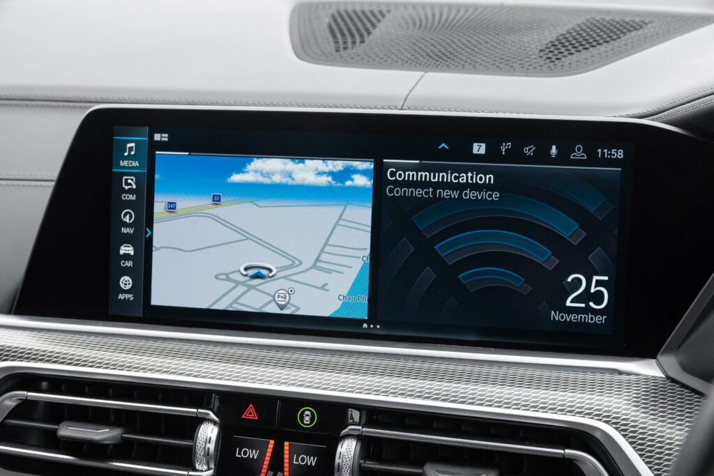 จอหน้าปัดดิจิตอล BMW Live Cockpit Professional มาพร้อมกราฟิกสวยงามคมชัด อ่านค่าง่าย ขณะที่หน้าจอกลางแดชบอร์ดขนาดใหญ่ก็แสดงผลได้ลื่นไหล เมนูใช้งานง่าย มาพร้อมฟังก์ชั่นที่ครบครัน ควบคุมการทำงานผ่านปุ่มหมุนที่คอนโซลกลาง สามารถรองรับการสั่งการได้ทั้งเสียงพูดและท่าทางโบกมือ โดยรวมแล้วเป็นระบบความบันเทิงที่เสถียรและมีประสิทธิภาพสูงในระดับต้นๆ ของวงการ