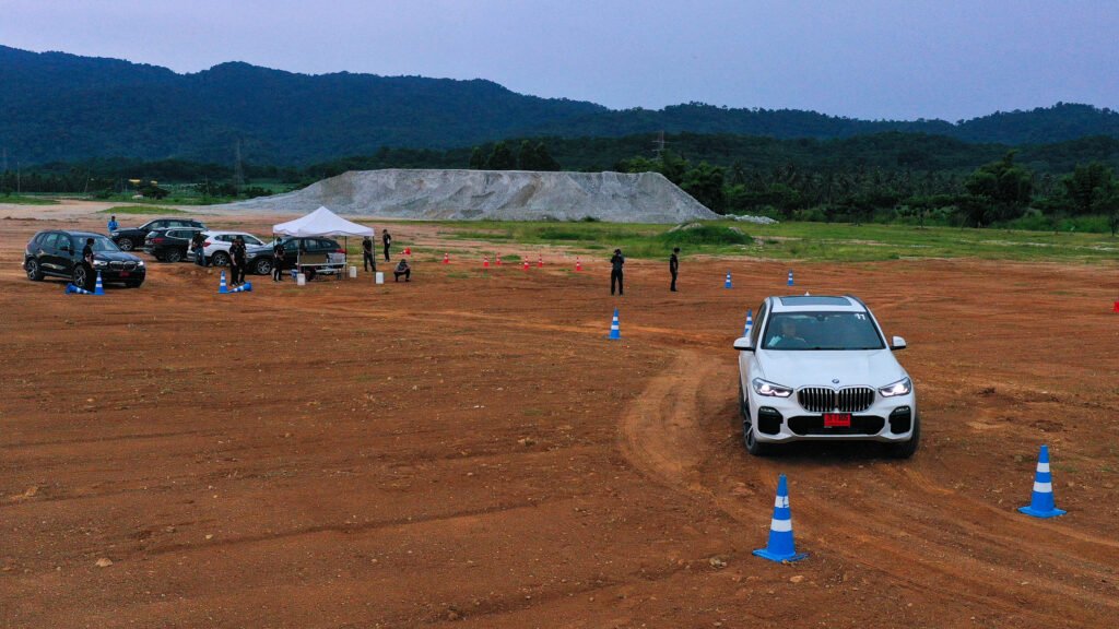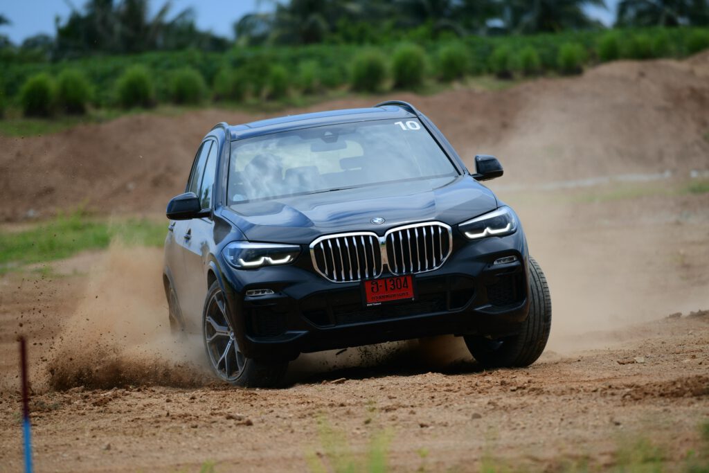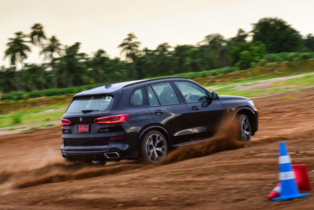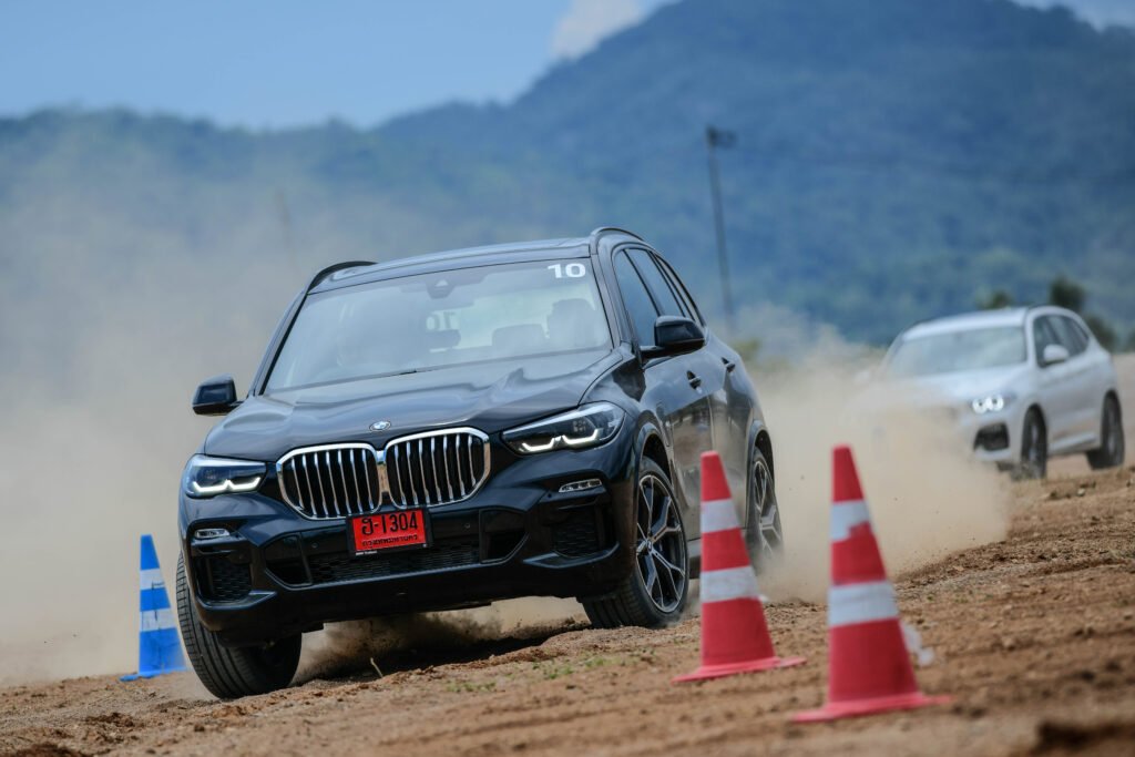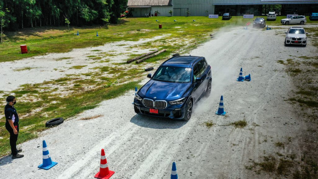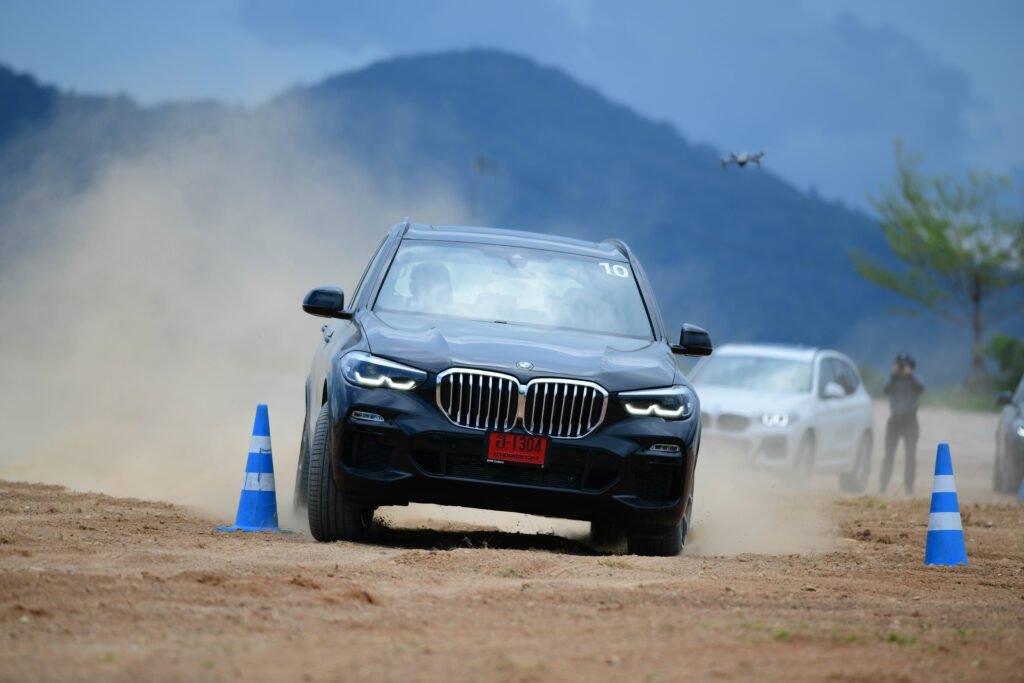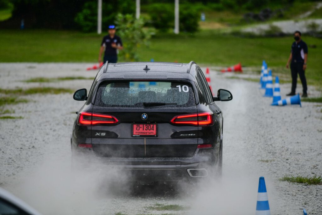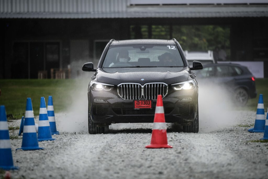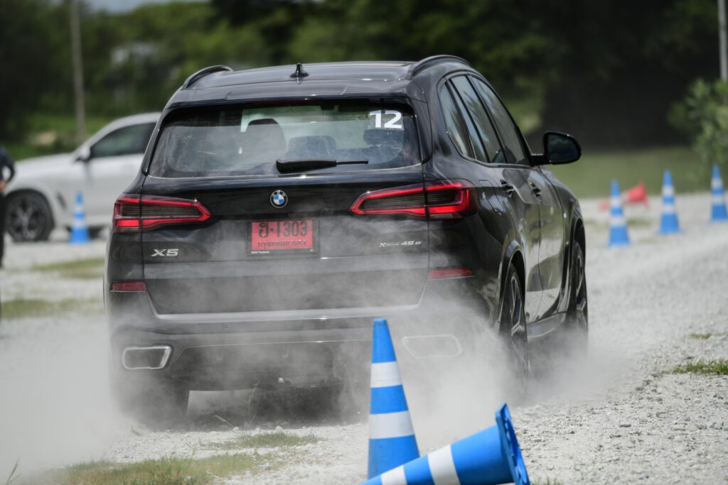การทดสอบความคล่องตัวและความปราดเปรียวของ X5 xDrive45e M Sport ในวันนี้ ทางบีเอ็มดับเบิลยู ประเทศไทย จัดให้ในรูปแบบ Gymkhana บนพื้นผิวดินกรวดที่มีความลื่นพอสมควร ถือเป็นการลองประสิทธิภาพของระบบขับเคลื่อนสี่ล้อ xDrive และระบบช่วงล่างแบบถุงลมที่สามารถปรับระดับอัตโนมัติทั้งในแบบออฟโรดและออนโรดได้เป็นอย่างดี