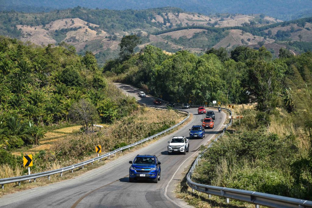 เส้นทางช่วงแรกจาก จ.เลย มา จ.เพชรบูรณ์ เป็นเส้นทางแบบเลนสวนขึ้น-ลงเนินสลับกับโค้งซ้าย-ขวาจำนวนมาก เป็นเส้นทางที่มีความสวยงามแต่ไม่สามารถใช้ความเร็วสูงมากได้ เครื่องยนต์ Duramax 180 แรงม้าของ Colorado High Country Storm ให้การตอบสนองในแง่ของพละกำลังและอัตราเร่งได้เป็นอย่างดี รถมีกำลังส่งขึ้นเนินได้แบบสบายๆ เราลองขับด้วยเกียร์ D ก่อนเพื่อดูว่ารถจะทำได้ราบรื่นแค่ไหน พอเจอเนินเกียร์จะชิฟต์ดาวน์ลงต่ำให้เองเพื่อเรียกกำลังให้มีแรงขึ้นเนิน กระบวนการนี้เป็นไปด้วยความรวดเร็วและแม่นยำ พอลองใช้โหมดแมนวล +/- เปลี่ยนเกียร์ด้วยตนเองจะรู้สึกได้เลยว่าขับง่ายขึ้น การตอบสนองเมื่อเปลี่ยนเกียร์ +/- ทำได้ค่อนข้างไวและนุ่มนวล จังหวะลงเนินก็ใช้เกียร์ต่ำเพื่อช่วยหน่วงความเร็วและลดภาระเบรก