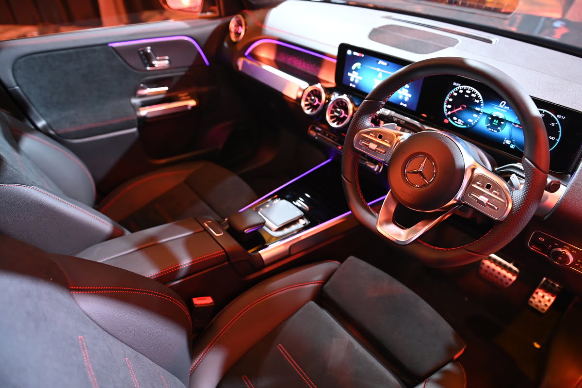 ในด้านการออกแบบภายใน EQB 250 AMG Line มาพร้อมนวัตกรรมและความสะดวกสบายอย่างไร้ที่ติ สะท้อนความหรูหราและความสปอร์ตทั่วทั้งห้องโดยสารด้วยการดีไซน์แบบ AMG ตั้งแต่คอนโซลหน้าที่ตกแต่งแบบ Aluminium-look ไปจนถึงเบาะหนังสไตล์ AMG ที่หุ้มด้วยหนัง ARTICO ตัดสลับกับ MICROCUT microfibre สีดำ พร้อมพวงมาลัยมัลติฟังก์ชั่นหุ้มหนัง Nappa และแป้นควบคุมการคืนพลังงานไฟฟ้า (Regenerate) แบบ Paddle shift ที่ทำจากวัสดุ Galvanished steel