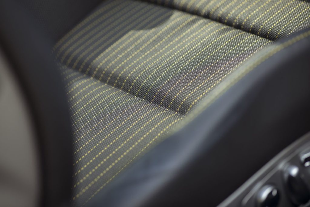 เมื่อเปิดประตูเข้านั่งภายในห้องโดยสารก็รู้สึกถึงความพิเศษทันที การออกแบบภายในให้ความรู้สึกสปอร์ตแบบดิบๆ เรียบง่ายแต่มีมนต์ขลัง มาพร้อมเบาะนั่งทรงสปอร์ตวัสดุผ้า Sport-Tex ช่วยโอบรัดตัวให้นิ่งอยู่กับที่ ปรับหาตำแหน่งนั่งขับที่เหมาะสมได้ง่าย พวงมาลัยแบบสปอร์ตหุ้มหนังมาพร้อมกับปุ่มหมุนเล็กๆ สำหรับเลือกโหมดการขับขี่ได้เพียงปลายนิ้ว รวมทั้งหน้าปัดแบบเข็มบอกรอบเครื่องและความเร็วชวนให้นึกถึงตัวแรงยุคเก่าที่บางทีดูแล้วยังเข้าใจง่ายและได้อารมณ์กว่าหน้าปัดดิจิตอลของรถยุคนี้ซะอีก
