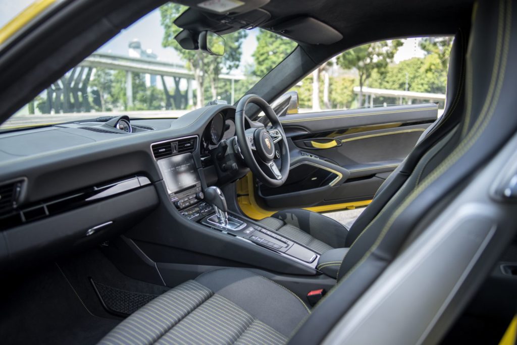 คุณสามารถตกแต่งภายในห้องโดยสารให้ดูสปอร์ตมากขึ้นได้ด้วยแพ็คเกจตกแต่งที่มีให้เลือก 3 สีตามตัวถังภายนอก ได้แก่ Racing Yellow, Guards Red และ GT Silver Metallic สำหรับตกแต่งอุปกรณ์อาทิ เข็มขัดนิรภัย ตะเข็บเบาะนั่ง มือจับประตู และโลโก้ 911 ที่พนักพิงศีรษะ นอกจากนี้ยังสามารถเพิ่มระบบความบันเทิง Porsche Communication Management