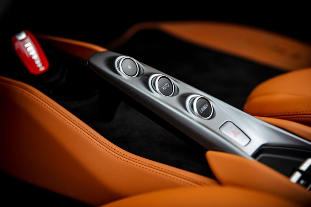 แดชบอร์ดตกแต่งด้วยอะลูมิเนียมอย่างกลมกลืนทั้งยังให้มุมมองที่ดูบางเบา ใช้คาร์บอนไฟเบอร์สีเงินเป็นเส้นแบ่งระหว่างส่วนบนและล่างของแดชบอร์ด ช่วยเติมเต็มภาพรวมของห้องโดยสารให้ดูปราดเปรียว และเติมเต็มแดชบอร์ดด้วยมาตรวัดแบบคลาสสิก พร้อมมาตรวัดรอบติดตั้งไว้ตรงกลาง นอกจากนั้นยังมาพร้อมกับออปชั่นจอระบบสัมผัส (Touchscreen) สำหรับฝั่งผู้โดยสาร คอนโซลกลางจัดวางไว้ใต้แดชบอร์ด และออกแบบให้แยกออกจากแดชบอร์ดอย่างชัดเจน เป็นอีกจุดหนึ่งที่เน้นย้ำให้เห็นถึงสัมผัสที่บางเบาของห้องโดยสาร นอกจากนั้นยังดีไซน์ให้ดูลอยตัวและเพรียวบางอีกด้วย