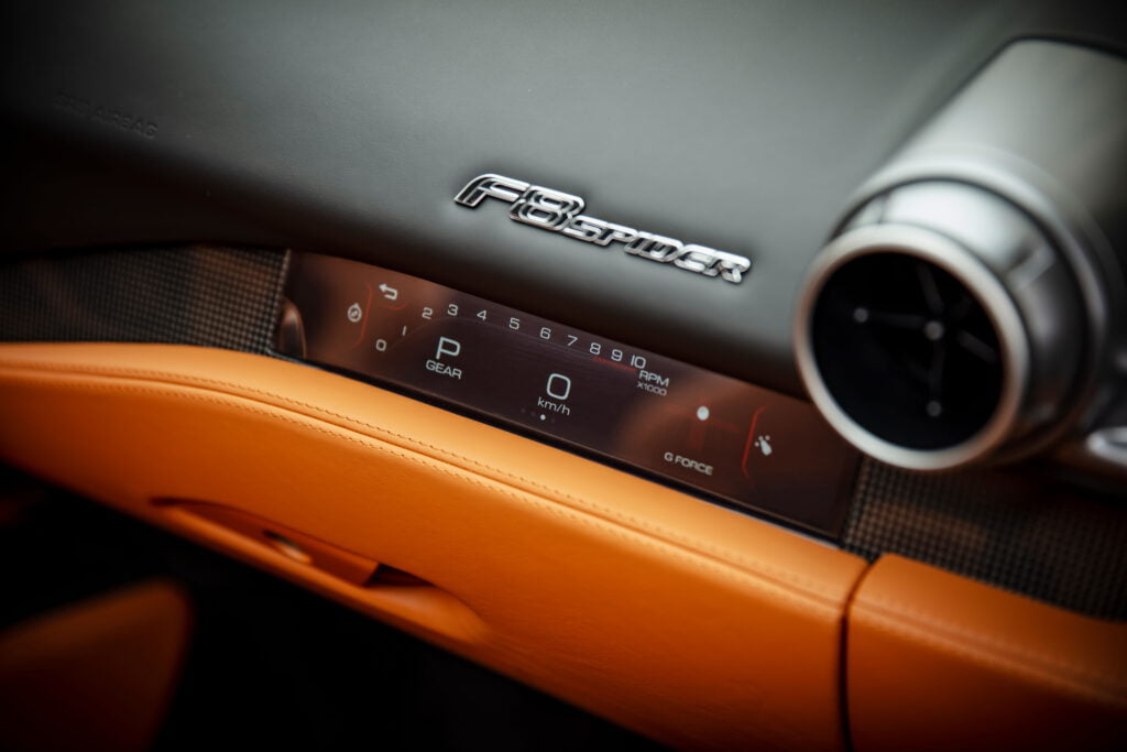 ฝากระโปรงท้ายคือหนึ่งในความโดดเด่นสะดุดตาของ F8 Spider รูปทรงของฝาท้ายที่ดูเหมือนปลากระเบนนี้ เริ่มต้นจากสันส่วนกลางของกระจกหลัง และค่อยๆ ลาดหายกลมกลืนลงไปใต้ปีกของสปอยเลอร์ สอดรับการไหลของอากาศไปในตัว