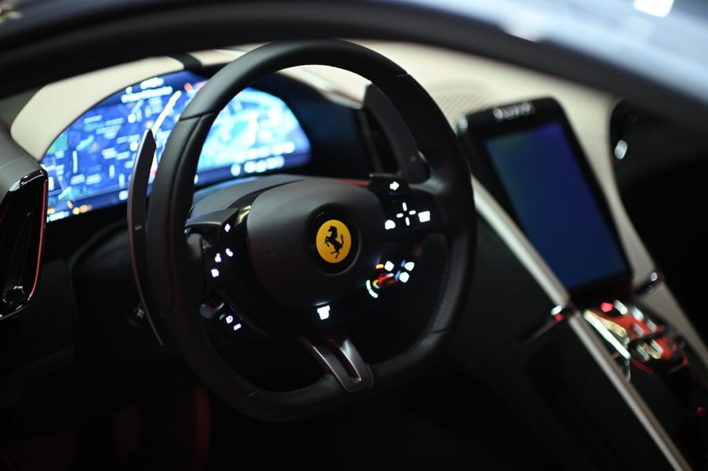 ห้องโดยสารของ Ferrari Roma มีรูปแบบที่แบ่งแยกฝั่งผู้ขับและผู้โดยสารออกจากกันเป็นสองส่วนอย่างชัดเจน ห้องโดยสารแบบคู่นี้ไม่ใช่เพียงแค่แดชบอร์ดที่โอบล้อมเท่านั้น แต่เป็นทุกองค์ประกอบที่เชื่อมโยงต่อเนื่องกันอย่างกลมกลืน พวงมาลัยดีไซน์ใหม่ตามหลักปรัชญา “สายตาอยู่ที่ถนนเบื้องหน้า มือจับบนพวงมาลัย” ด้วยการควบคุมฟังก์ชั่นหลักๆ ได้ง่ายเพียงปลายนิ้วสัมผัส โดยผู้ขับไม่จำเป็นต้องละมือออกจากพวงมาลัย พร้อมจอหน้าปัดแบบดิจิตอลขนาด 16 นิ้ว ที่ให้ข้อมูลได้อย่างครบถ้วน