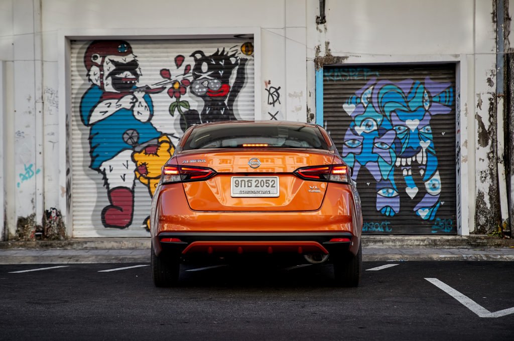 Almera ใหม่มีตัวถังกว้างและยาวกว่ารุ่นก่อนหน้าแต่เตี้ยกว่าเล็กน้อย ฐานล้อยาวขึ้น รูปลักษณ์ภายนอกของ Almera ใหม่บอกเลยว่าถูกใจเรามาก มองจากภายนอกดูสวยคมเข้ม โดดเด่นด้วยกระจังหน้า V-Motion ไฟหน้า LED แนวนอนพร้อมไฟเดย์ไทม์ รันนิ่ง ไลท์ ทรงบูมเมอแรง รวมถึงดีไซน์หลังคาแบบ Floating roof นิสสันทำการบ้านในด้านการออกแบบมาเป็นอย่างดีทำให้เมื่อมองเส้นสายในภาพรวมแล้วรถดูคันใหญ่และไม่ให้ความรู้สึกของรถอีโค่คาร์ราคาประหยัด