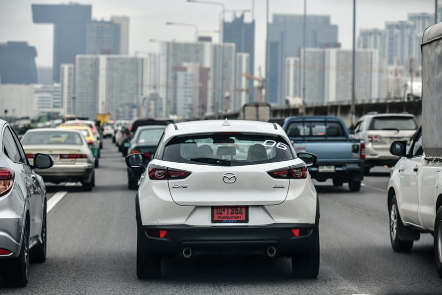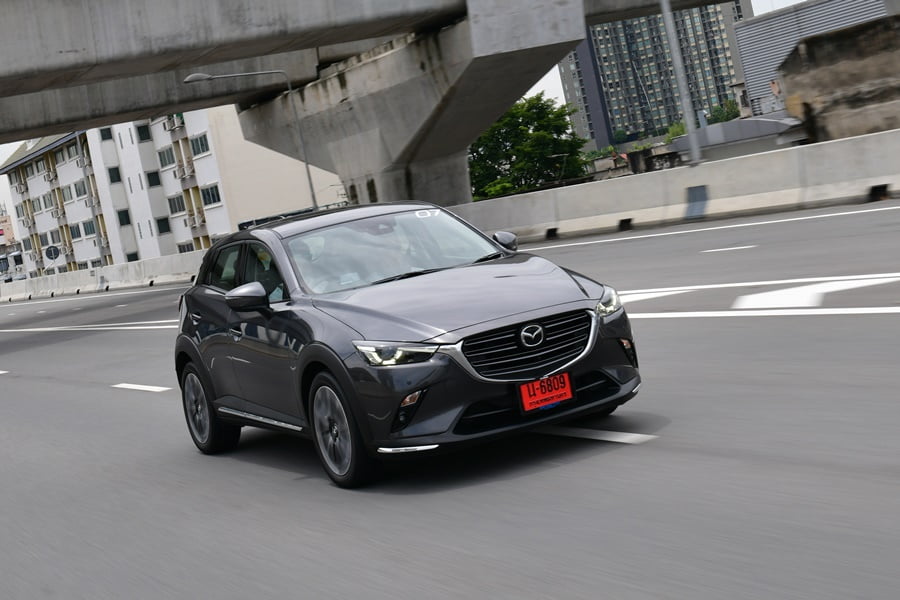 รถยนต์มาสด้าทุกรุ่นขึ้นชื่อในเรื่องประสบการณ์การขับขี่ที่มาพร้อมกับความสนุกและสมรรถนะของรถที่ยอดเยี่ยม ซึ่ง CX-3 ใหม่ก็ไม่ทำให้เราผิดหวัง ขาไปเราออกเดินทางจากกรุงเทพมุ่งหน้าสู่ จ. ราชบุรี ด้วย CX-3 รุ่นท็อป 1.5 XDL 105 แรงม้า ที่ 4,000 รอบ/นาที แรงบิด 270 นิวตันเมตร ที่ 1,600-2,500 รอบ/นาที แน่นอนว่าไม่มีวันไหนที่ กทม. จะขับรถได้แบบโล่งๆ สบายๆ แต่ CX-3 ก็ไม่ทำให้เรารู้สึกเหนื่อยมากในการขับขี่บนสภาพการจราจรที่หนาแน่น รถมีความนุ่มนวล ขับสบาย ทัศนวิสัยด้านหน้าที่สูงกว่ารถเก๋งทั่วไปเล็กน้อย ทำให้การลัดเลาะเปลี่ยนเลนเป็นไปอย่างคล่องตัว