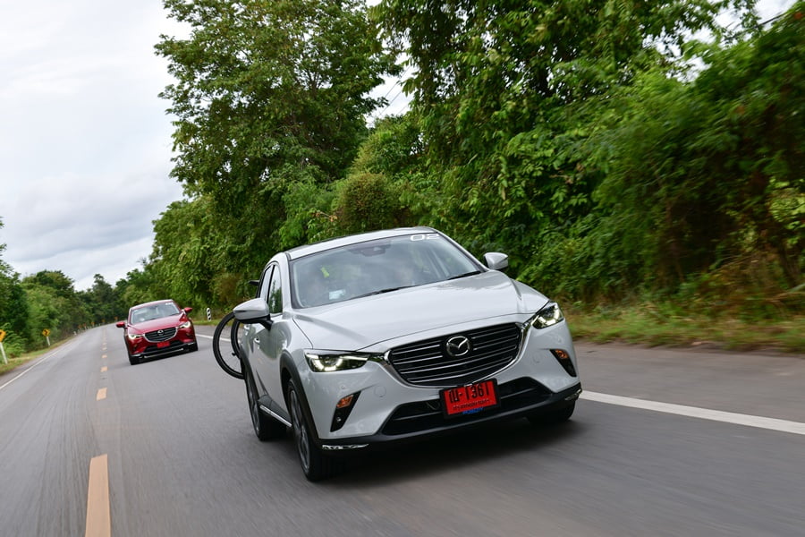 ตามธรรมเนียมเมื่อเปิดตัวรถใหม่ บริษัทผู้ผลิตก็จะร่อนจดหมายเชิญสื่อมวลชนสายยานยนต์มาทดสอบสมรรถนะของรถยนต์รุ่นนั้น ในครั้งนี้มาสด้าพาเราไปขับทดสอบเจ้า CX-3 ใหม่ เส้นทาง กทม. – สวนผึ้ง จ.ราชบุรี รวมระยะทางไปกลับกว่า 400 กม. เราได้ลองทั้งเครื่องดีเซลและเบนซิน เส้นทางมีครบทุกรสชาติทั้งในเมือง นอกเมือง และทางขึ้น-ลงเขา เพื่อไม่ให้เป็นการเสียเวลาไปดูกันเลยว่า การแก้เกมของมาสด้าในครั้งจะดีงามอย่างไร