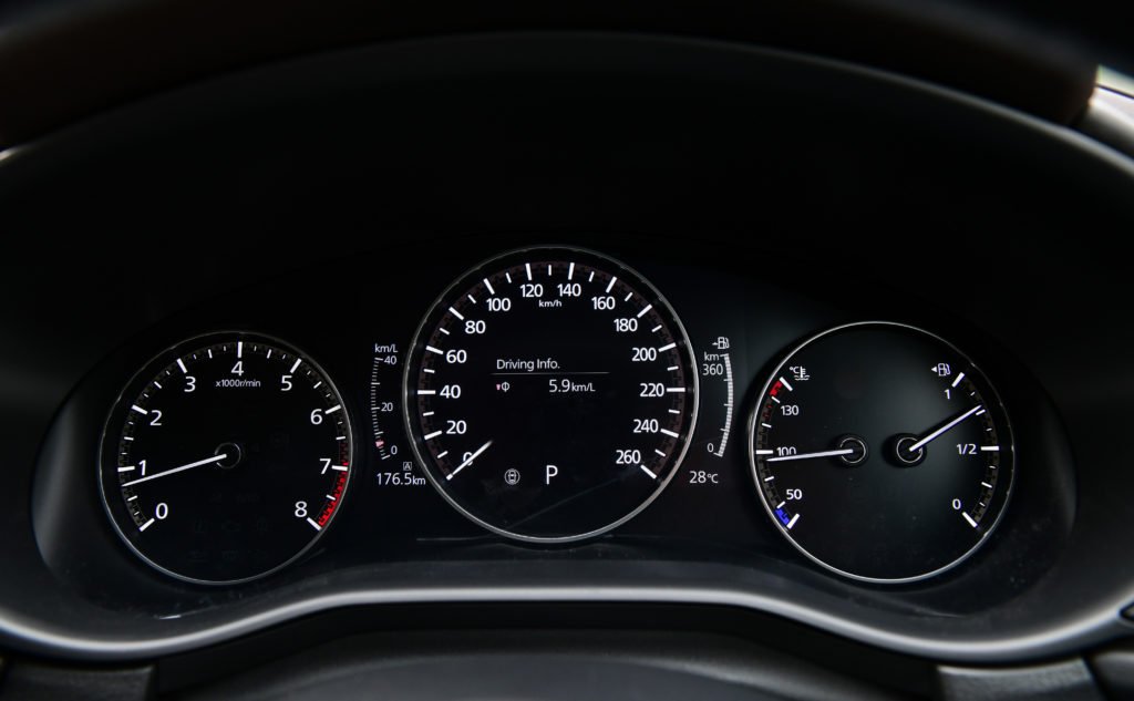 แผงหน้าปัดเป็นอีกจุดที่เราชื่นชอบ แม้ว่ามันจะไม่ค่อยมีสีสันสักเท่าไรแต่ดูๆ ไปแล้วลงตัว แผงหน้าปัดนี้เป็นแบบกึ่งดิจิตอล วงซ้ายวัดรอบ วงขวาวัดอุณหภูมิและระดับน้ำมันเชื้อเพลิง ตรงกลางเป็นจอสีขนาด 7 นิ้วที่บอกครบทุกสิ่งอย่างที่ผู้ขับอยากรู้ตั้งแต่ความเร็ว อัตราสิ้นเปลือง ไปจนถึงระบบช่วยขับ นอกจากนี้ยังมี Head-up display สะท้อนข้อมูลสำคัญบนขึ้นกระจกหน้าผู้ขับขี่ทำให้ไม่ต้องละสายตาจากถนน