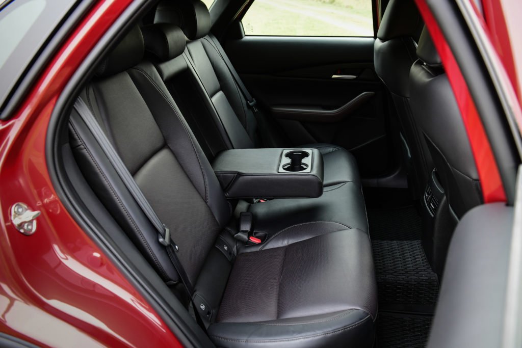 พื้นที่เบาะหน้ามีเพียงพอกับคนตัวสูง 180 ซม. เบาะหลังรู้สึกได้เลยว่านั่งสบายขึ้นกว่า Mazda 3 ชัดเจน ถ้าคนตัวสูงมานั่งจะมีพื้นที่ช่วงศีรษะและช่วงขาเยอะขึ้น นั่งทางไกลนานๆ แล้วสบายตัว เบาะก็มีความนุ่ม พนักพิงเอนกำลังได้องศา เบาะตัวกลางดึงลงว่าเป็นที่วางแขนพร้อมช่องวางแก้วน้ำ อุโมงค์กลางไม่ใหญ่จนรู้สึกว่าเกะกะ มีช่องแอร์ด้านหลังให้ความเย็นได้แบบทั่วถึง