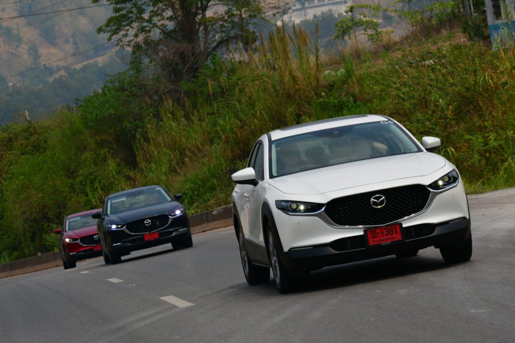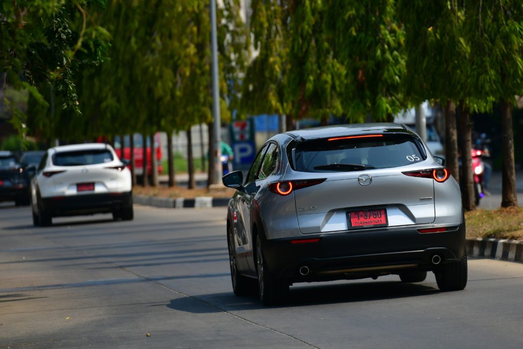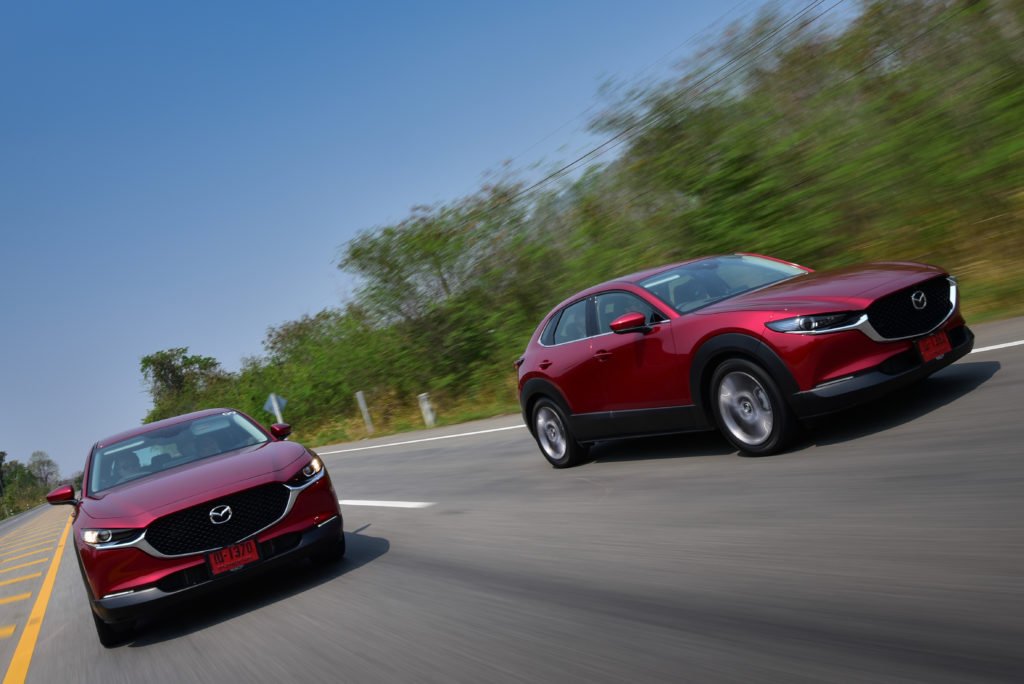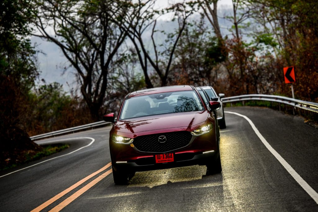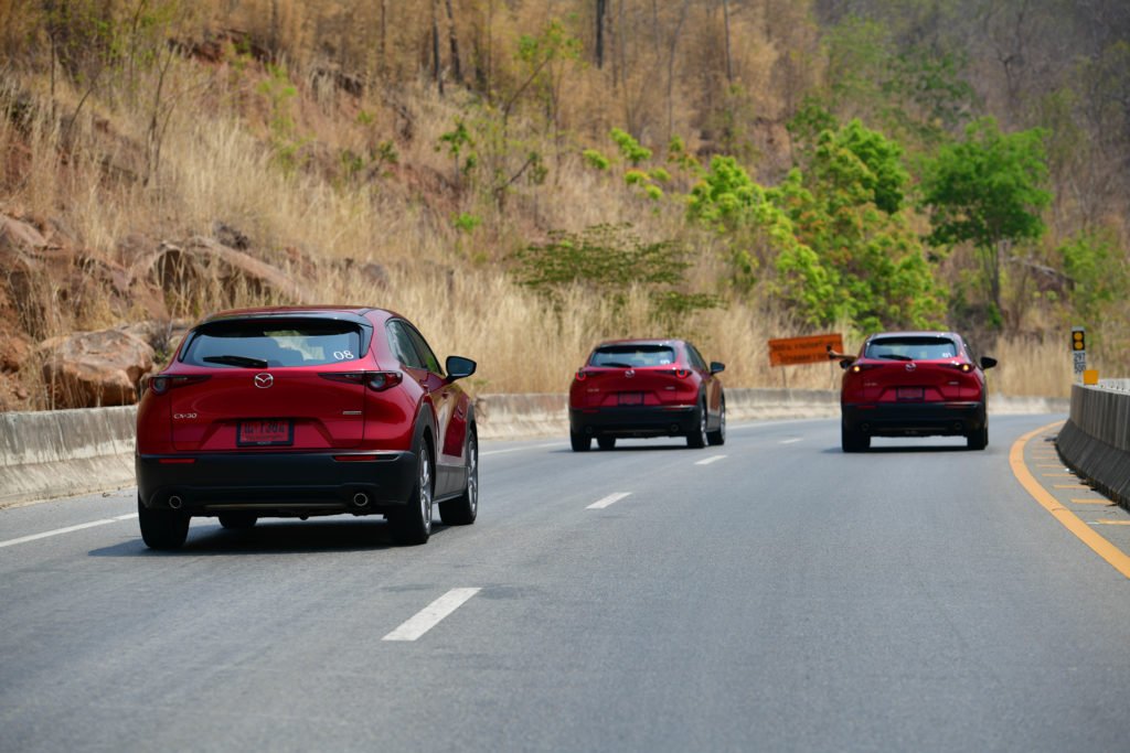 น่าเสียดายที่วิกฤตไวรัสโคโรน่าทำให้งานเปิดตัวของ CX-30 ที่มาสด้าเตรียมงานไว้อย่างยิ่งใหญ่เป็นอันต้องถูกยกเลิก เราจึงมีโอกาสได้เห็น CX-30 ผ่านตามสื่อต่างๆ เท่านั้น แต่ในท้ายที่สุดมาสด้าก็ยืนยันที่จะจัดทริปทดสอบขึ้น นี่จึงเป็นครั้งแรกที่เราจะได้เจอ CX-30 ตัวจริงพร้อมกับขับทดสอบในเส้นทางพิษณุโลก – ขอนแก่น รวมระยะทางกว่า 300 กม. ผ่านทั้งถนนในเขตเมือง ทางราบ และทางลาดชันบนภูเขาที่เป็น 2 เลนสวนกัน เรียกว่าครบทุกรสชาติและยังสามารถวัดประสิทธิภาพของรถได้เป็นอย่างดี