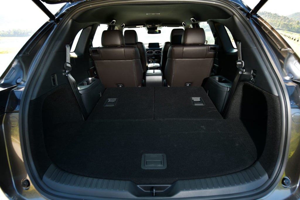 ห้องเก็บสัมภาระของ CX-8 เรียกว่าใหญ่เพียงพอกับสัมภาระของครอบครัวแม้จะไม่สามารถพับเบาะแถวสองลงได้ ถ้ากางเบาะทั้งสามแถว พื้นที่ด้านท้ายก็ยังมีเยอะพอสมควร แต่ถ้าพับเบาะแถวสามลงคุณจะพบกับที่ราบขนาดใหญ่ที่ใส่สัมภาระได้มากมาย ตัวพื้นห้องราบเสมอขอบกันชน เบาะแถวสามพับแยกแบบ 50/50 สะดวกสบายด้วยประตูท้ายไฟฟ้าแต่ยังไม่เป็นแบบแฮนด์ฟรีนะ