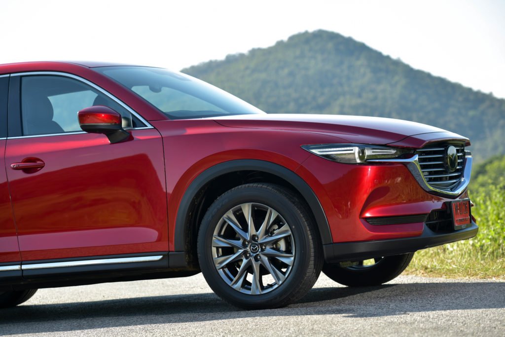 ตัวถังที่ใหญ่กับความสูงที่ไม่ระฟ้าเหมือนพวก PPV ทำให้ขับความเร็วสูงแล้วมีแต่ความหนึบแน่นมั่นใจ ช่วงล่างเกาะถนนดีทั้งทางตรงและในโค้ง แถมยังนิ่งสนิทไม่โคลงเคลง ระบบบังคับเลี้ยวยังคงดีงามเหมือน CX-5 มีความเที่ยงตรงและสื่อสารกับคนขับอย่างชัดเจนด้วยการเลี้ยวที่แม่นยำ มีระยะฟรีที่เหมาะสมส่งผลถึงการควบคุมที่ง่านและมั่นใจ น้ำหนักพวงมาลัยที่ความเร็วต่ำนั้นเบาสบายไม่ต่างจากรถเก๋งทั่วไป พอใช้ความเร็วสูงพวงมาลัยจะหนักขึ้นแต่ความไวและการตอบสนองต่างๆ ยังเป็นธรรมชาติ