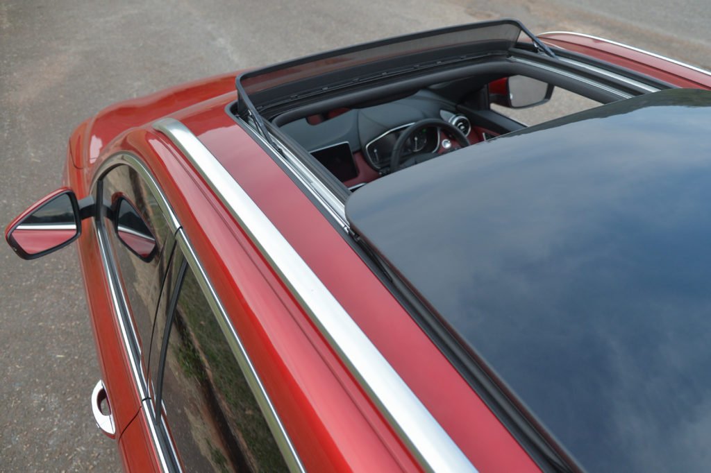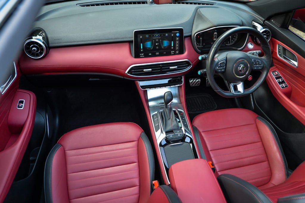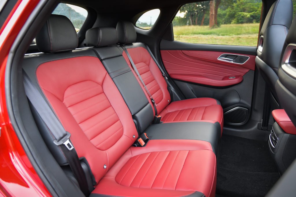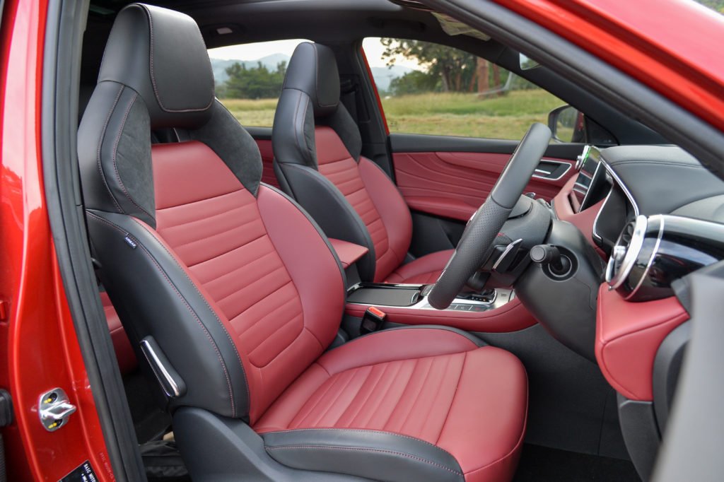 เบาะนั่งทรงสปอร์ตหุ้มด้วยหนัง สลับ Alcantara แค่เห็นก็เร้าอารมณ์แล้ว ยิ่งทั้งห้องโดยสารเป็นโทนสีแดงด้วยยิ่งดูพรีเมี่ยมเข้าขั้นยานยนต์ชั้นนำจากยุโรป แดชบอร์ด แผงประตู คอนโซลกลาง ทุกอย่างเป็นวัสดุซอฟต์ทัชทั้งหมด งานประกอบแน่นหนา รายละเอียดต่างๆ มีความประณีต และวัสดุที่ใช้ก็เป็นของเกรดสูงดูดีมีราคา เบาะนั่งปรับไฟฟ้า 4 ทิศทาง ตัวเบาะมีความใหญ่ หนา นุ่ม รองรับกับสรีระได้ดี พวงมาลัยปรับได้ 4 ทิศทาง ขึ้น-ลง-เข้า-ออก ที่น่าประทับใจคือไฟสร้างบรรยากาศในห้องโดยสาร Interactive Ambient Light ปรับเปลี่ยนได้ 64 สี และ ปรับตามโหมดการขับขี่