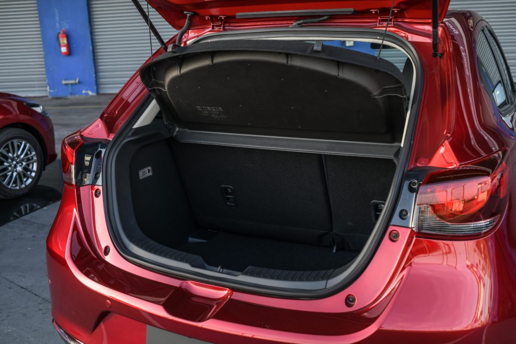 จบ 2 รอบก็สลับมาเป็นรุ่นเบนซิน 1.3 SP Sport ตัวถังแฮทช์แบ็ก อัตราเร่งต่างกันลิบลับ แรงดึงน้อยกว่า แต่ยังคงนุ่มนวลเหมือนกัน เราใช้เทคนิคเดียวกันในการเข้าโค้งผลที่ได้คือเบนซินดูคุมง่ายกว่านิดๆ แรงเหวี่ยงขณะเข้าโค้งมีน้อยกว่า อาการหน้าดือและท้ายออกก็มีน้อยกว่ารุ่นดีเซลเช่นกัน ทั้งนี้น่าจะมากจากน้ำหนักตัวรถที่เบากว่า ความยอดเยี่ยมของระบบ GVC Plus ช่วยให้เข้าโค้งได้อย่างสนุก มั่นใจ และทำเวลาได้ดี