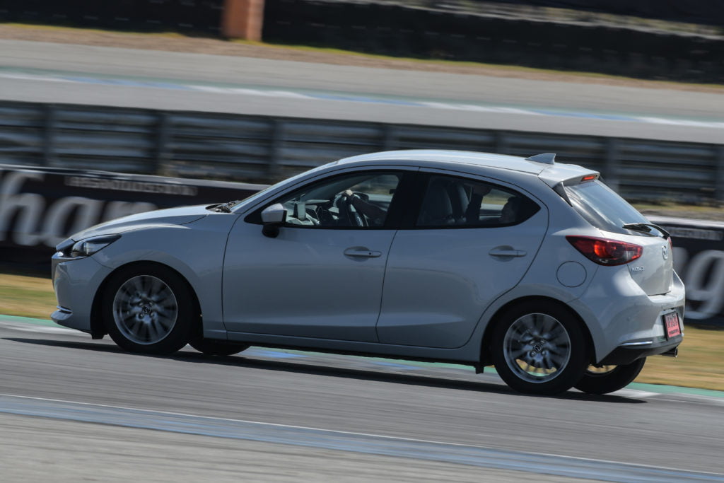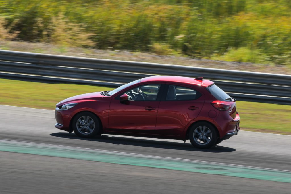 Mazda2 ใหม่ยังมี 2 เครื่องยนต์เหมือนเดิมคือ เบนซิน 1.3 ลิตร 93 แรงม้า และดีเซล 1.5 ลิตร 105 แรงม้า ซึ่งในวันนี้เราจะได้ลองทั้ง 2 เครื่องยนต์ ส่วนการทดสอบจะแบ่งออกเป็น 3 สถานี ได้แก่ Performance ทดสอบสมรรถนะ, Handling / Brake / GVC Plus ทดสอบการบังคับควบคุม และขับเต็มรอบสนาม Full Lap รถที่ใช้ทดสอบมี 3 รุ่น ประกอบด้วย XDL ตัวท็อปดีเซล, 1.3 SP ตัวท็อปเบนซิน และ 1.3 S Sport ตัวรองท็อปเบนซิน มีทั้งตัวถังซีดานและแฮทช์แบ็ก