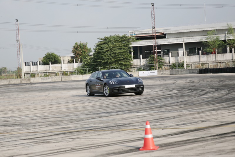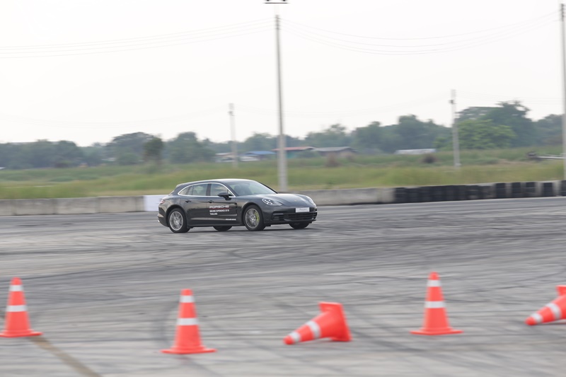 ต่อมาเป็นสถานี Handling ที่จำลองแทร็กในสนามมาให้ได้ซัดกัน มีทั้งทางตรงยาว โค้งหักศอกซ้ายขวา และโค้งตัวเอส ช่วงนี้เราได้ทดลองเหยียบเต็มที่เพื่อทดสอบระบบควบคุมเสถียรภาพการทรงตัว Porsche Dynamic Chassis Control Sport (PDCC Sport) ระบบควบคุมแรงบิด PTV Plus รวมทั้งระบบควบคุมการทรงตัวด้วยอิเล็กทรอนิกส์ PASM ทุกระบบทำให้การขับเข้าโค้งที่ความเร็วสูงเป็นไปอย่างสมบูรณ์แบบ รถมีความหนึบเกาะทุกโค้ง ควบคุมง่าย ทรงตัวดี มีความนิ่งและมั่นคง อาการโยนแทบจะไม่มี ประกอบกับพวงมาลัยมีความรวดเร็ว แม่นและคม ทำให้ควบคุมง่ายในทุกสถานการณ์ โดยรวมแล้วคือเพอร์เฟคทุกอย่างแบบที่นักขับต้องการจริงๆ