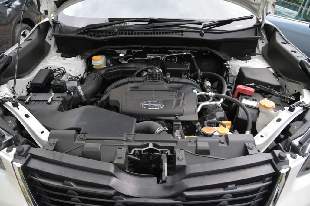 Forester ใหม่มาพร้อมกับเครื่องยนต์ Boxer สูบนอน 2.0 ลิตร ไม่มีระบบอัดอากาศ ข้อดีของเครื่องสูบนอนก็คือความสมดุลและจุดศูนย์ถ่วงที่ต่ำจากลักษณะของเครื่องยนต์ที่จะแบนราบ การเคลื่อนที่ของลูกสูบเป็นแนวนอน และตำแหน่งวางเครื่องที่ต่ำใกล้กับพื้นถนนกว่าพวกเครื่องสูบเรียงหรือสูบวี มันเห็นผลในตอนเข้าโค้งที่รถจะนิ่งเกาะถนนและควบคุมง่ายกว่า พละกำลังที่ได้จากขุมพลังบล็อก FB20 คือ 156 แรงม้า ที่ 6,000 รอบต่อนาที แรงบิด 196 นิวตันเมตร ที่ 4,000 รอบต่อนาที จับคู่กับเกียร์อัตโนมัติ Lineartronic CVT ขับเคลื่อนสี่ล้อ Symmetrical All-Wheel Drive นี่คือเอกลัษณ์ที่ไม่มีค่ายไหนทำ แต่ Subaru เลือกจะแตกต่างในแนวทางของตัวเองจนค้นหาข้อได้เปรียบกว่าคู่แข่งอื่นๆ จนเจอ