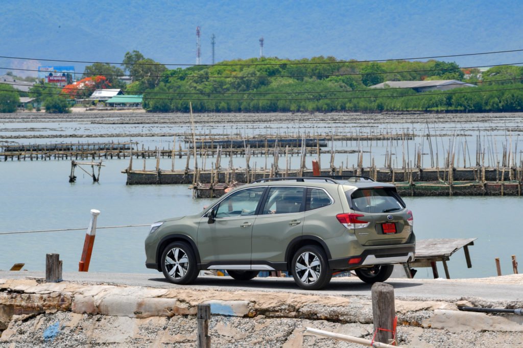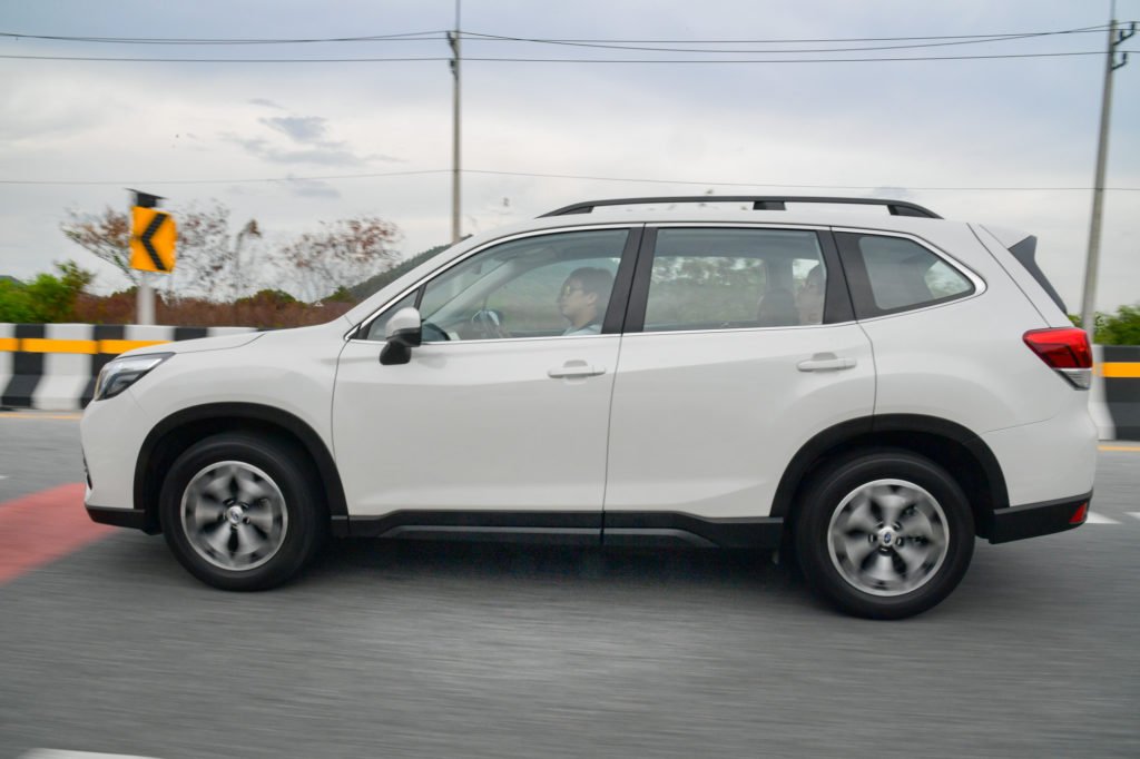 Forester ใหม่มาพร้อมกับแพล็ตฟอร์มใหม่ที่ชื่อว่า Subaru Global Platform จุดประสงค์ของการคิดค้นแพล็ตฟอร์มนี้คือเพื่อเพิ่มเสถียรภาพการขับขี่ ลดการสั่น ลดการโคลง ลดเสียงรบกวน และเพิ่มการบังคับควบคุม ประกอบกับมีระบบขับเคลื่อนสี่ล้อแบบสมมาตร ดังนั้นคุณภาพการขับขี่ของเอสยูวีคันนี้จึงดีงามมาก ระบบกันสะเทือนหน้า-หลังดูดซับแรงกระแทกจากหลุมบ่อได้ดีจากการปรับเซ็ตมาเพื่อเอาใจคนมีครอบครัวเป็นหลัก มันนุ่มนวลแต่ไม่ย้วยทำให้สาดโค้งความเร็วสูงแล้วยังนิ่งอยู่ ประกอบกับความแน่นหนึบ เกาะถนน และนิ่งสนิทเมื่อใช้ความเร็วสูงในทางตรง มันจึงมอบความมั่นใจให้กับผู้ขับได้เป็นอย่างดี ระหว่างทางทดสอบเราเจอฝนกระหน่ำลงมาแต่ด้วยความยอดเยี่ยมของระบบขับเคลื่อนสี่ล้อแบบสมมาตร เราจึงกล้าใส่เต็มแบบไม่กลัวหลุด ซึ่งรถกีมีการยึดเกาะที่ยอดเยี่ยมและให้ความรู้สึกไม่ต่างจากขับถนนแห้งเลย