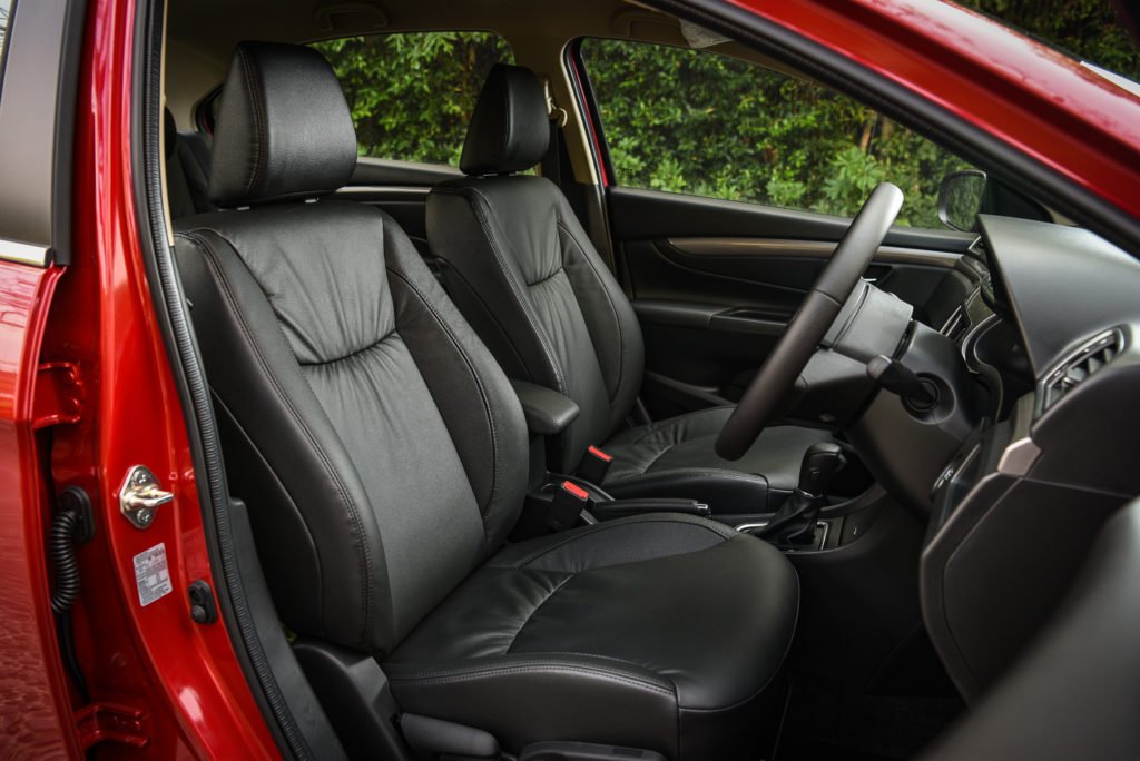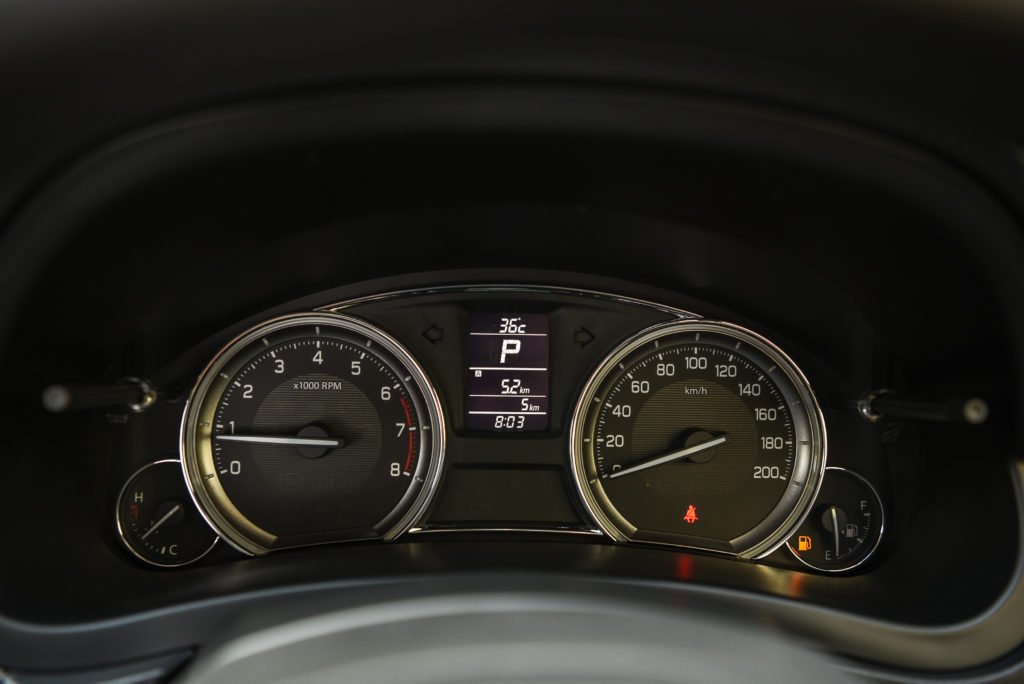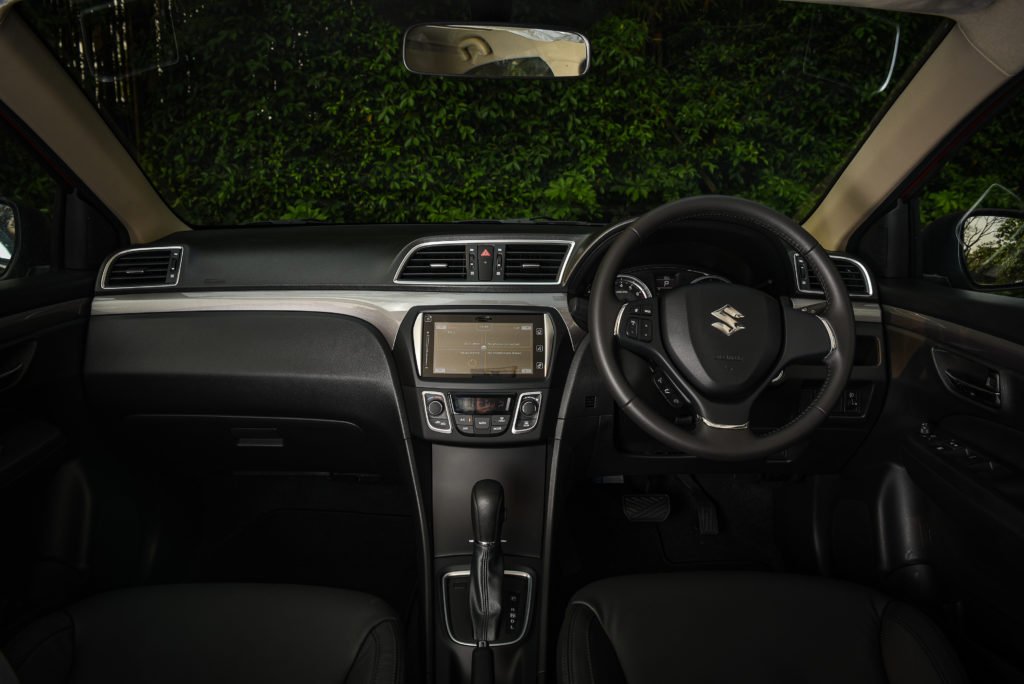 ภายในแทบจะไม่เปลี่ยนแปลงอะไรไปจาก Ciaz ตัวท็อปของรุ่นก่อนหน้า ความโดดเด่นก็คือพื้นที่ภายในที่กว้างขวางพอๆ กับรถในคลาส C-Segment เข้า-ออกรถง่าย นั่งสบายทุกตำแหน่ง ทั้งยังให้อุปกรณ์มาอย่างครบครัน หน้าจอกลางแบบสัมผัสขนาด 7 นิ้ว พ่วงระบบ Suzuki Smart Connect รองรับการเชื่อมต่อ Apple CarPlay ระบบปรับอากาศอัตโนมัติ พวงมาลัยมัลติฟังก์ชั่น หน้าปัดแบบเข็มอนาล็อกพร้อมจอแสดงข้อมูลการขับขี่ดิจิตอลเหมือนเดิมเป๊ะ จุดที่เพิ่มเข้ามาก็คือ สวิทซ์ปรับระดับไฟหน้า ที่จะอยู่บริเวณด้านขวาคนขับ ตำแหน่งเดียวกันกับสวิทซ์เปิดปิดระบบเซ็นเซอร์ถอยรูปตัว P
